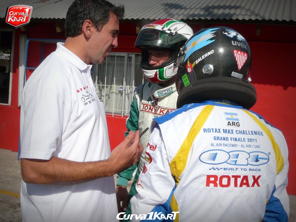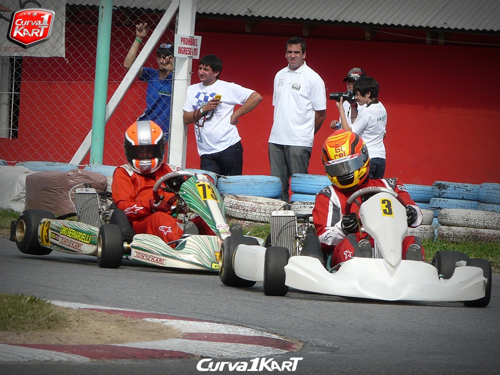 EL PAMPEANO GINO BERNARDELLI TOMA LA CURVA DE LA VIRGEN EN TRES RUEDAS, ANTE LA MIRADA DE RODRIGO ALENAZ (ROTAX ARGENTINA) Y “PIPA” CALABRESE QUE TOMA TIEMPOS