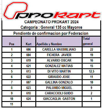La próxima fecha de Prokart está programada para el 5 de mayo en Ciudad Evita.