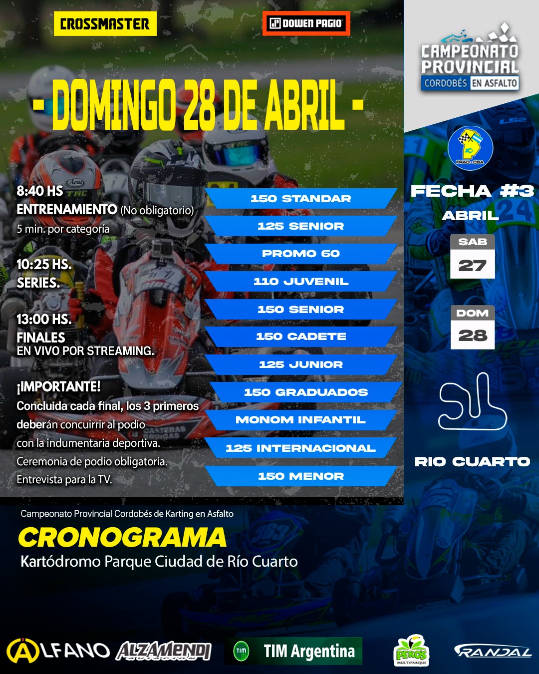 Este fin de semana se llevará a cabo la tercera fecha del Campeonato Provincial de Karting en Asfalto en el Kartódromo de Río Cuarto, marcando la segunda visita a este trazado. La competencia contarán con la participación de 11 categorías y más de 190 pilotos representando a 11 provincias.
