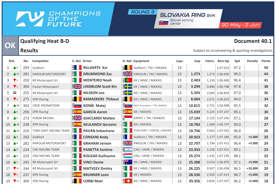 Santino Panetta avanzó en sus primeros heats en Slovakia Ring
