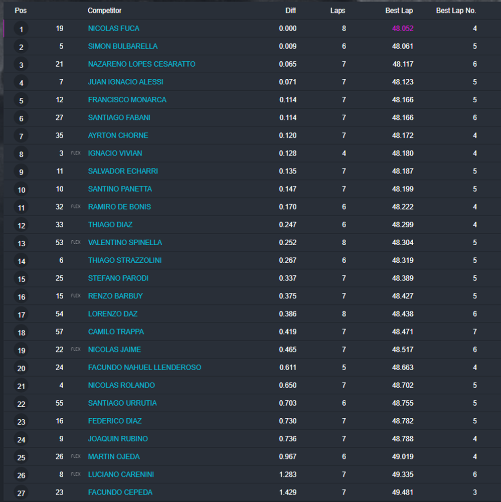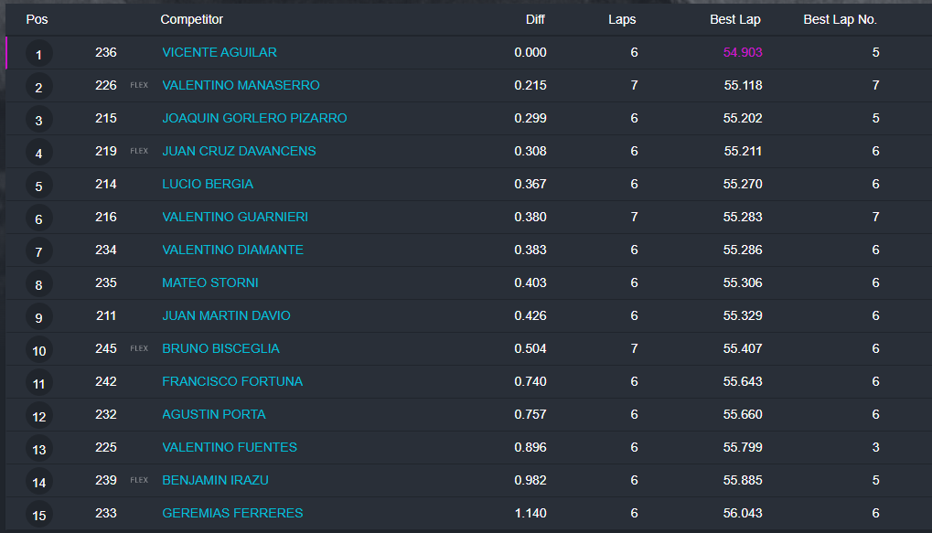 Este viernes se completaron las clasificaciones en el circuito 1 horario del Kartódromo de Buenos Aires, donde el neuquino VICENTE AGUILAR logró su primera pole position en Cadete, BAUTISTA PANETTA fue el mejor en Sudam Junior, el santafecino NICOLÁS FUCA marcó el mejor tiempo en Sudam Junior y MAXI PIÑEIRO festejó la pole de la clase Proam.