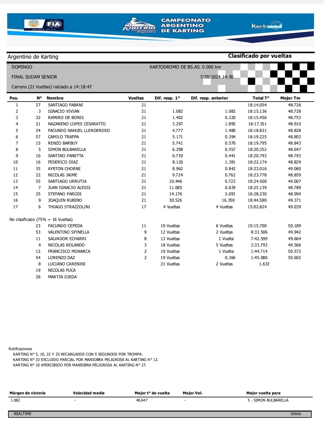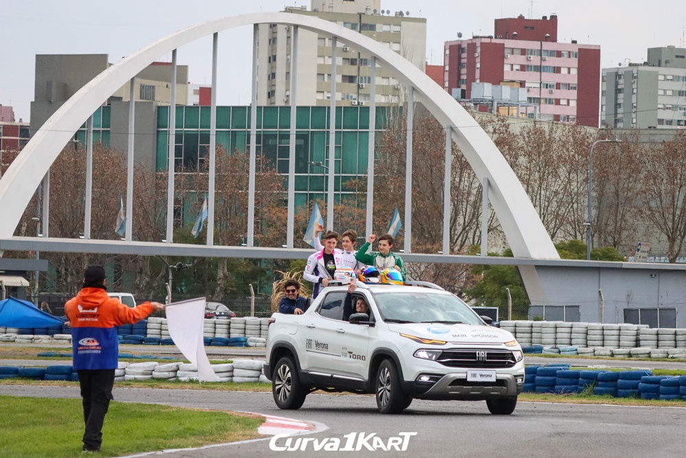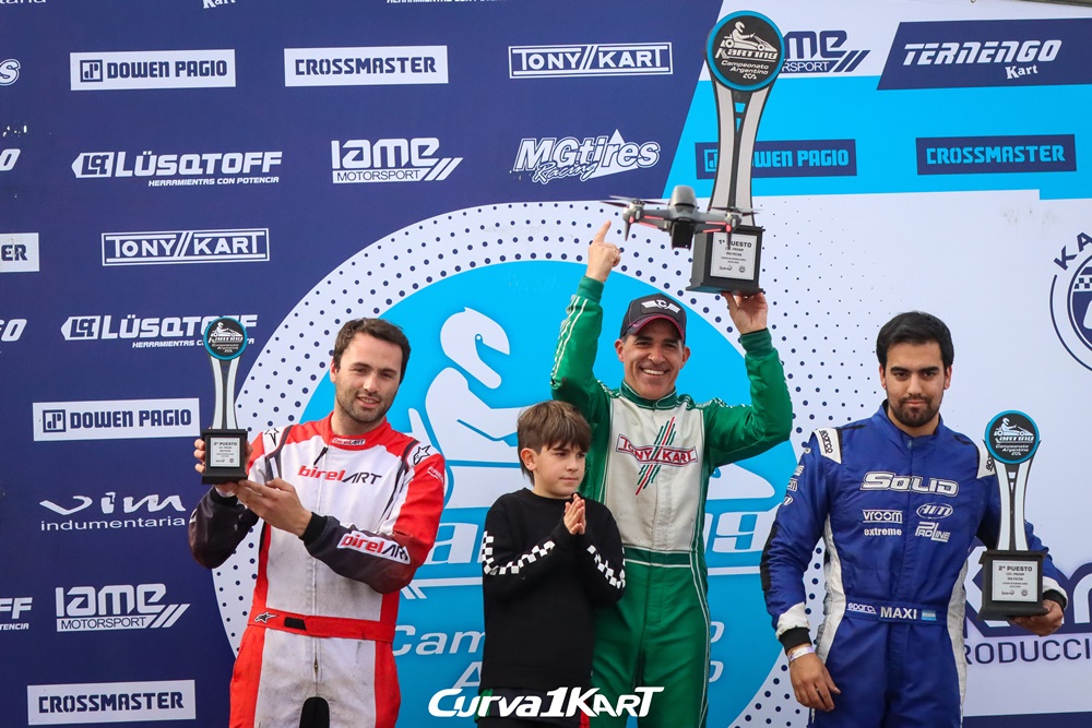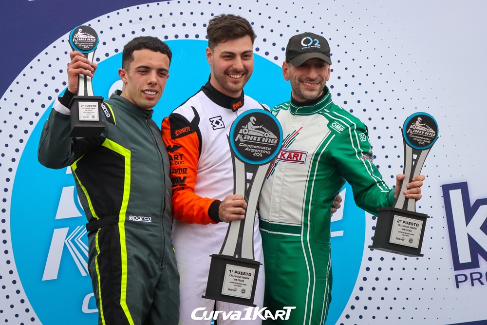 Fabani, Nacho Vivian (Zaffaroni Kart) y Ramiro De Bonis (JMF Kart) al podio, tres pilotos con basta experiencia compitiendo en esta divisional (o similares). Aplausos para el gran desempeño de Vivian, que con 38 años podría estar corriendo en Proam y lo hace en Senior siendo altamente competitivo.