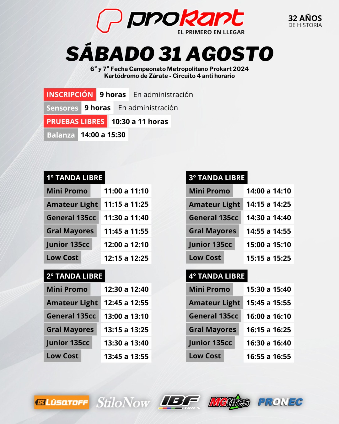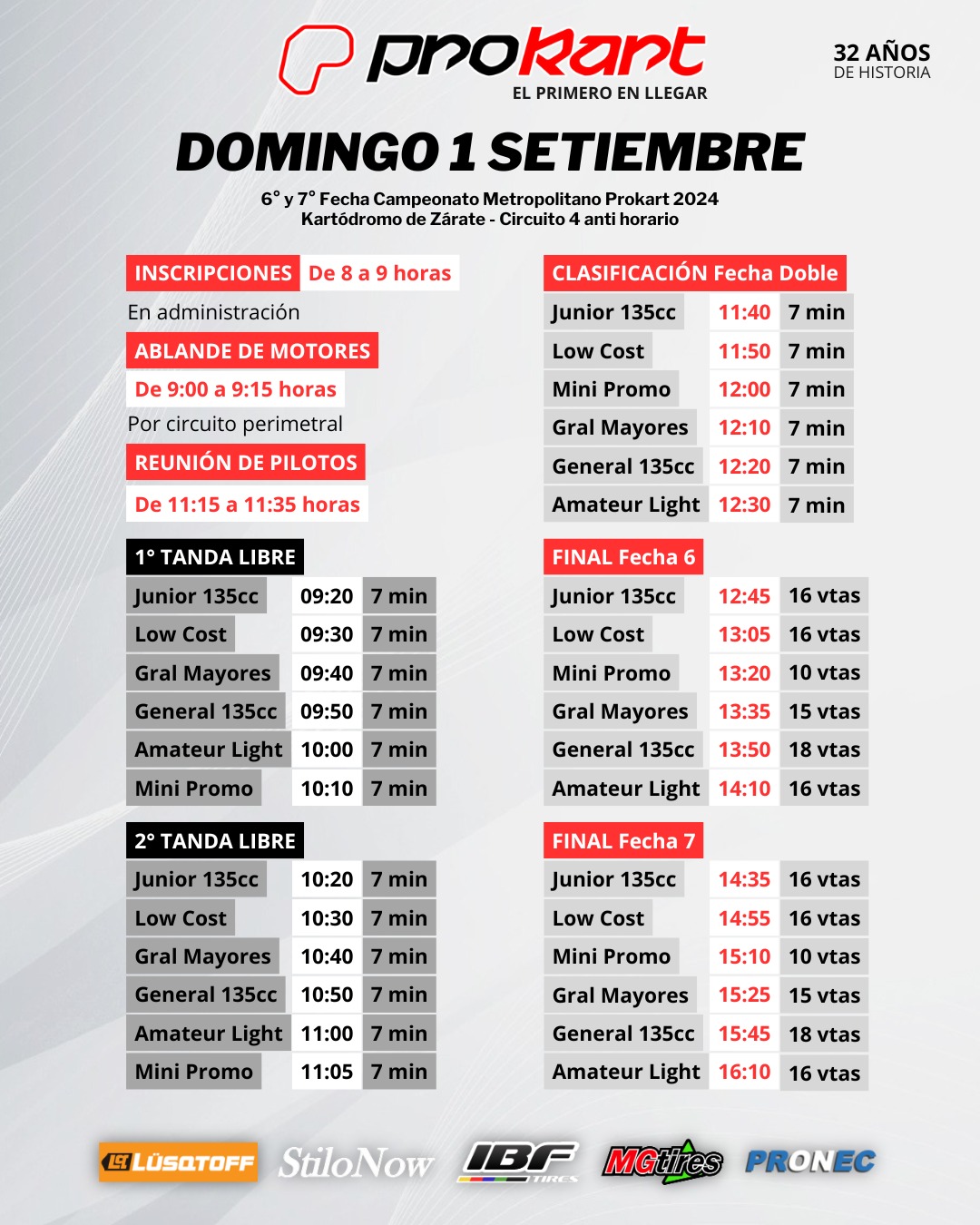 La carrera será en el circuito 4 de Zárate, con pruebas cronometradas para el día sábado y dos finales (una por cada fecha) para el domingo, competencias que se podrán ver “en vivo” a través de la cuenta de YouTube: Pilotos Prokart Asociados.