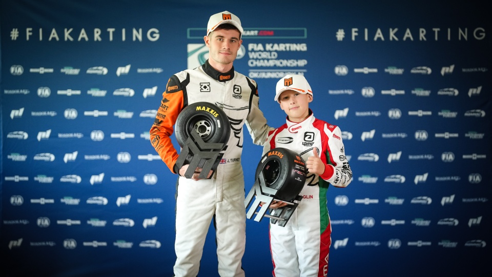 Los poleman británicos Joe Turney (OK) y Noah Baglin (OK-Junior)
