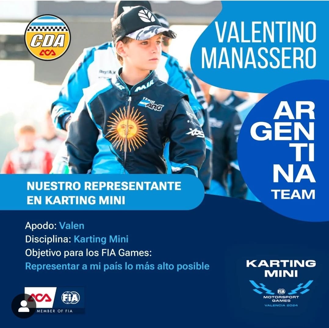 - VALENTINO MANASSERO – Será su primera carrera en Europa para el piloto de Victoria, Entre Ríos.