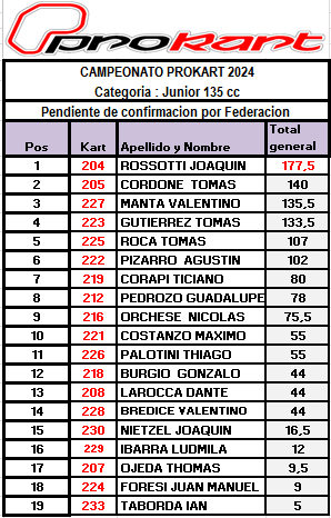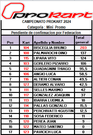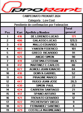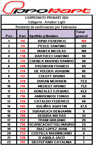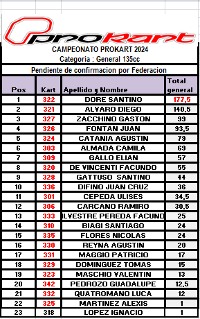 Finalizada la 32° temporada de Prokart Metropolitano, están disponibles las tablas definitivas de cada categoría que participó del campeonato 2024.