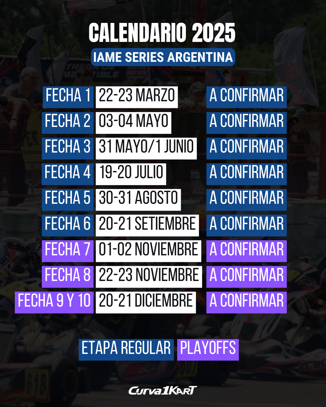 El campeonato IAME Series Argentina dio a conocer su calendario de competencias para la temporada 2025, donde tendrá 10 fechas distribuidas en 9 eventos.