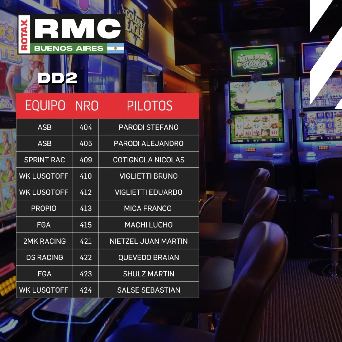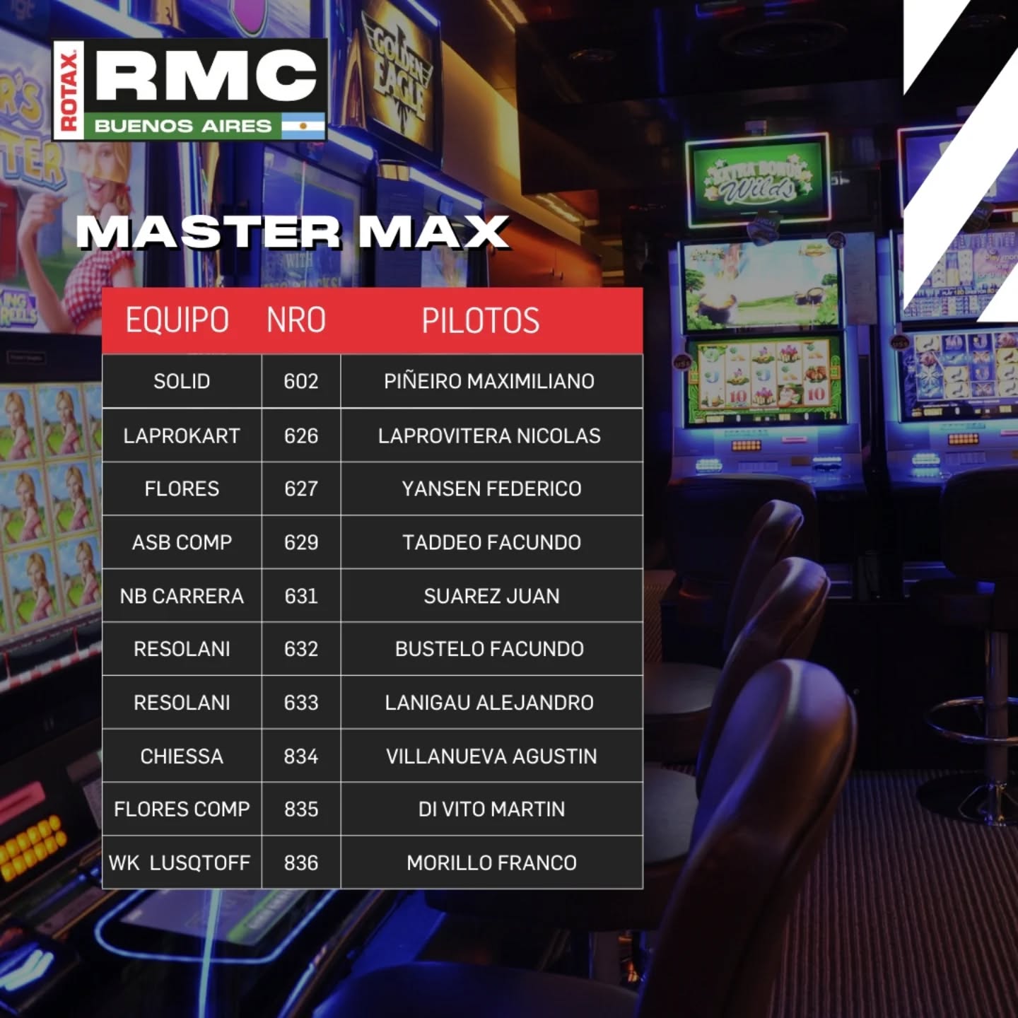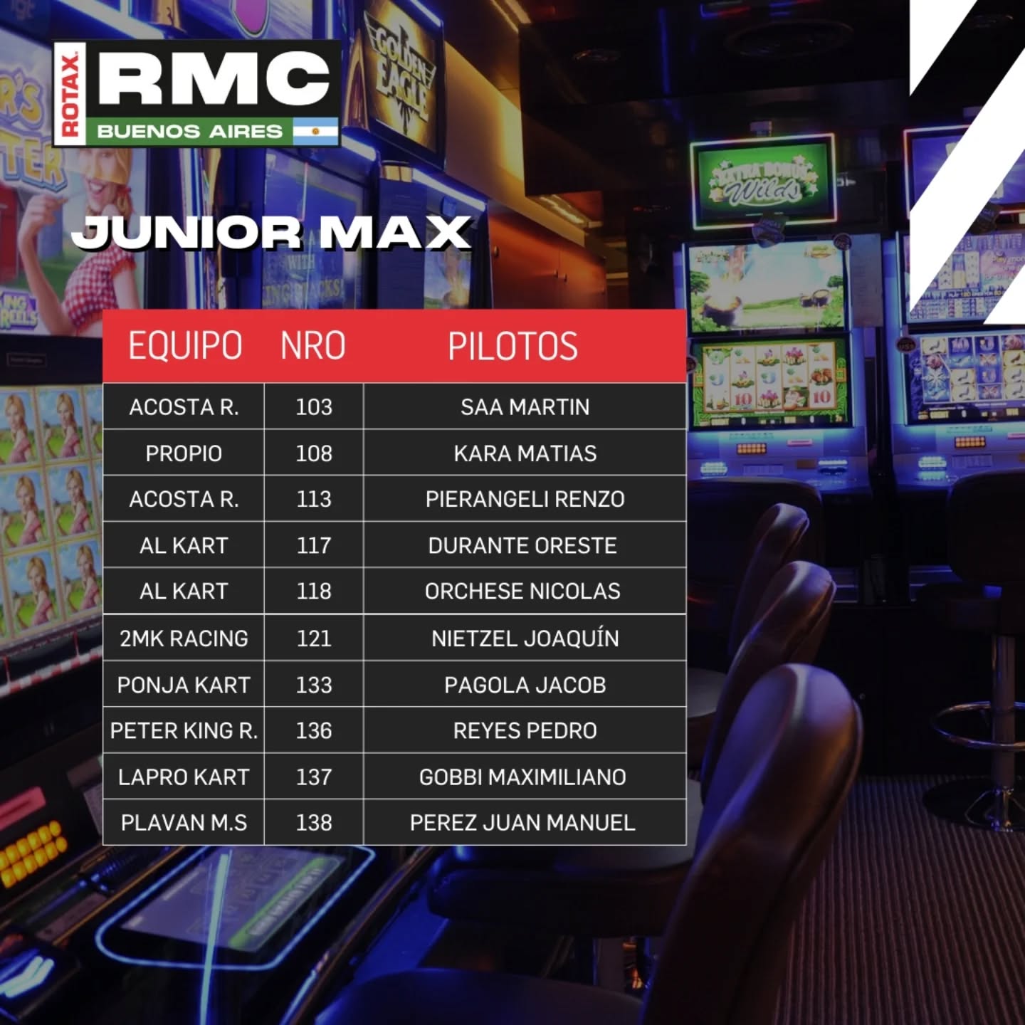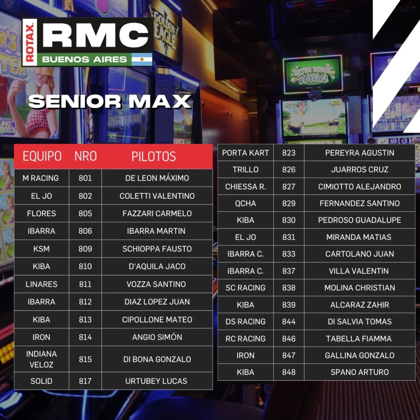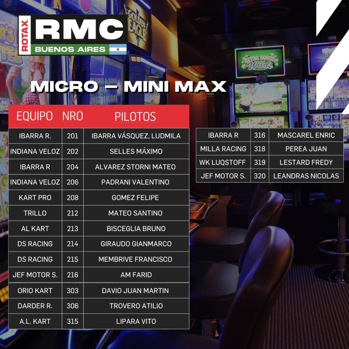 A horas del inicio de la primera carrera del año de Rotax, la organización dio la lista de pilotos anotados para el “callejero” en el parking del Casino de Buenos Aires.