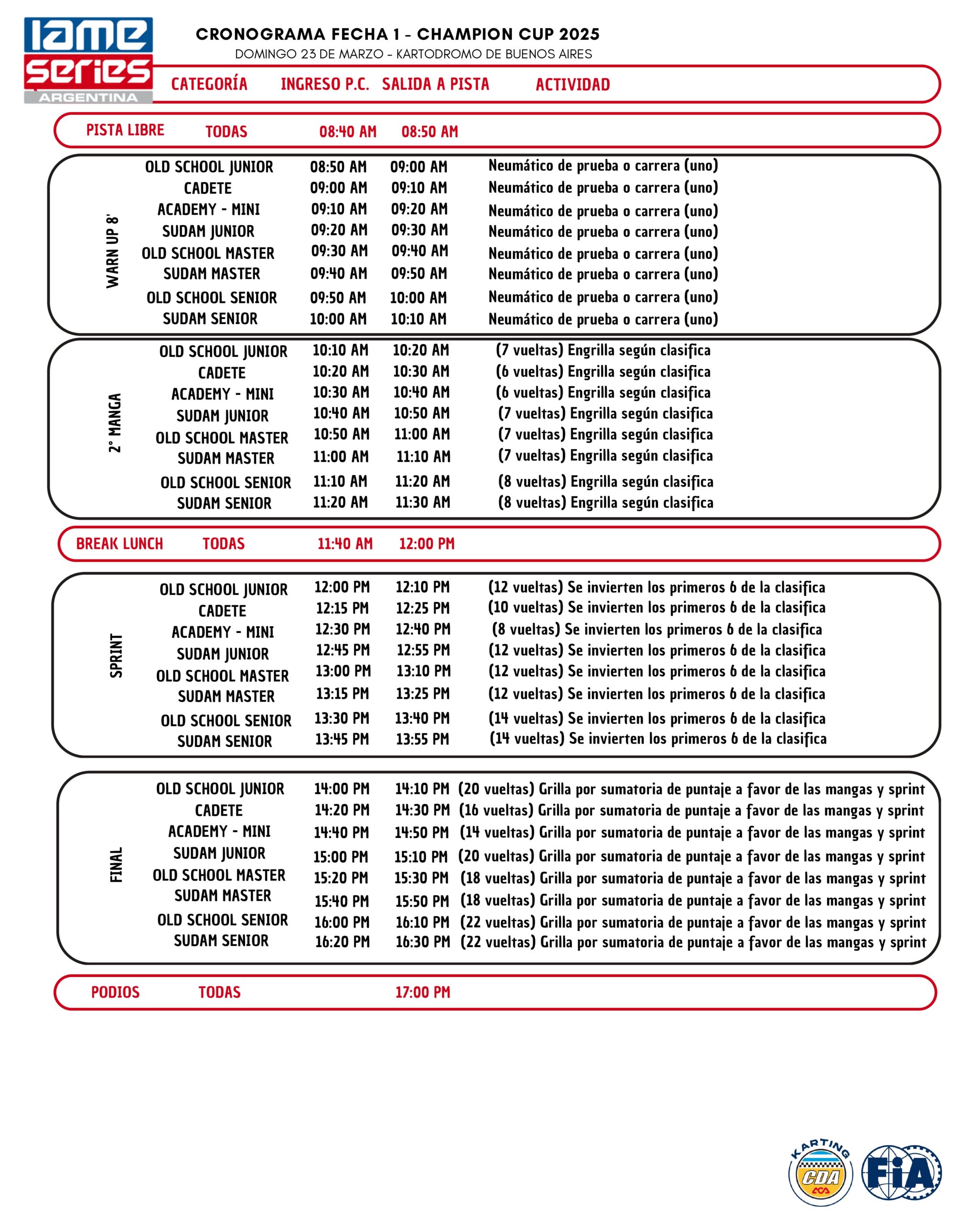 DOMINGO. Warm Up, 2° Manga, Sprint y Final.