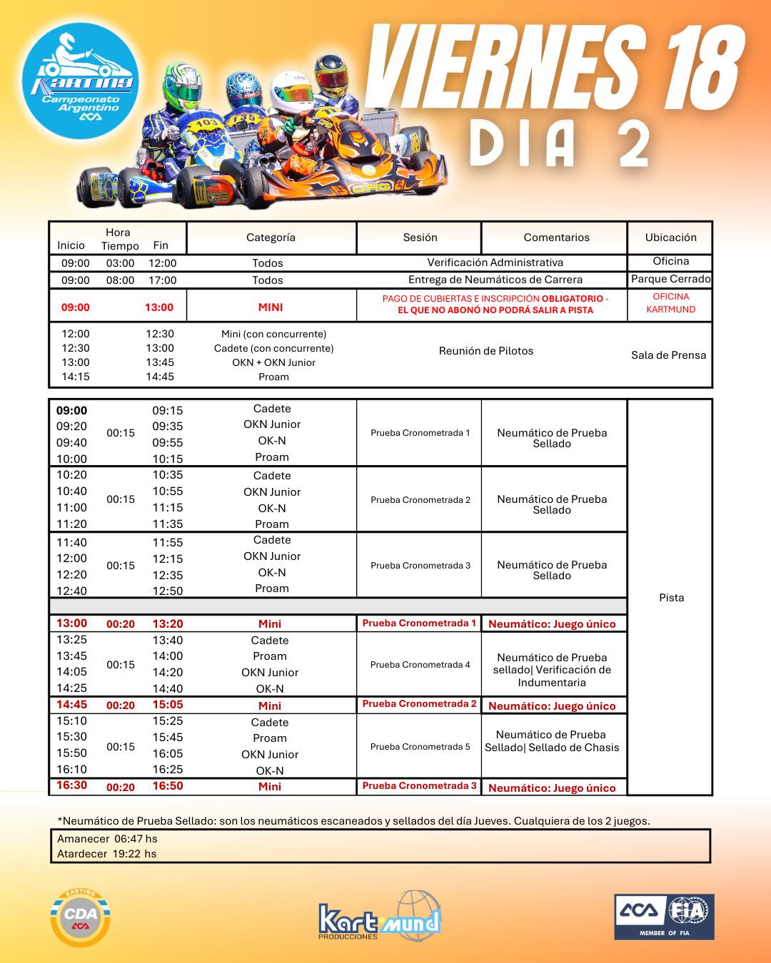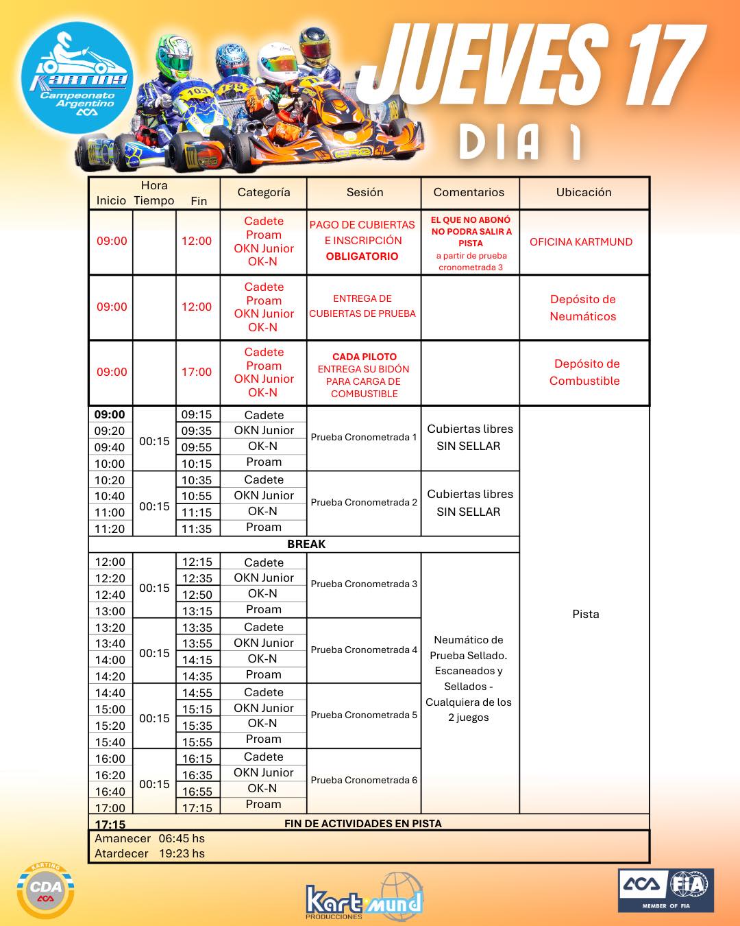 La organización del CAK anunció los horarios y circuitos para la 2° fecha del calendario 2025 que se realizará en tierras mendocinas del 17 al 20 de abril (Semana Santa).