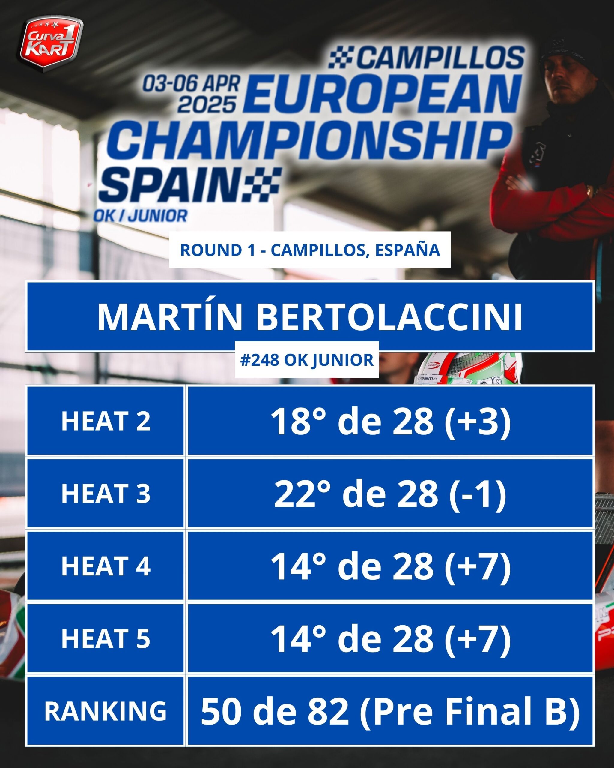 El cordobés de Arroyito Fausto Arnaudo junto al santafecino de Rafaela Martin Bertolaccini dejaron atrás su primer sábado en el Europeo de Karting FIA en Campillos, buscando un lugar en la final del domingo.