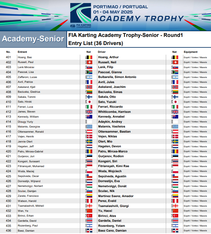 El piloto de Tigre (Buenos Aires) ya se encuentra en Portugal para disputar el primer evento del FIA Academy Trophy “Senior” 2025 en el Kartódromo Internacional do Algarve, en Portimao.