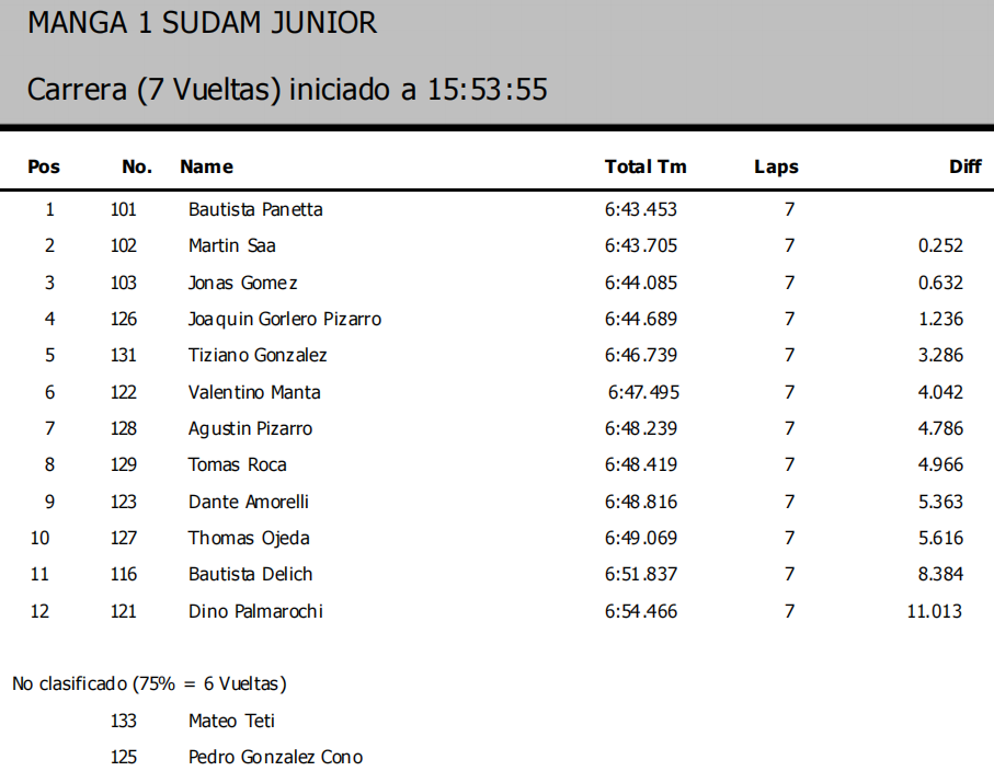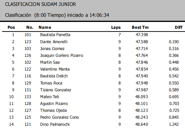 Bautista Panetta (RCK Kosmic) pole y manga en Sudam Junior, al igual que Thiago Palotini (Zaffaroni) que logró su primera pole position y victoria en heat, tras quedarse tercero en la largada y luego superar a Ian Taborda y su compañero Valentino Manassero.