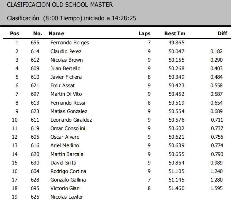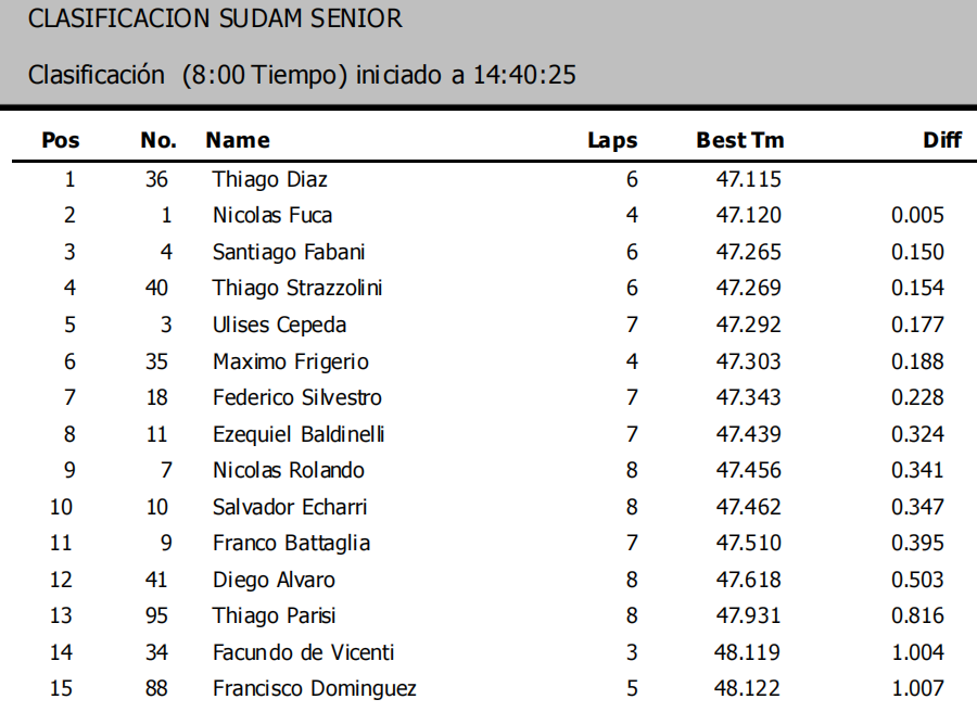 Thiago Díaz fue el mejor de la clasificación en Sudam Senior y Fernando Borges en Old Master. Ambos no corrieron sus mangas por el retraso descripto.