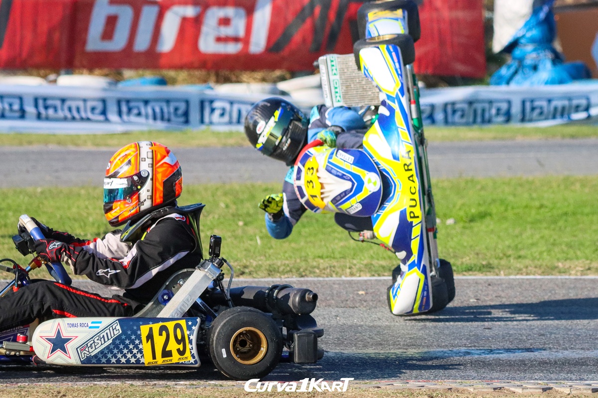 El hecho ocurrió en la curva posterior a la virgen y el piloto fue rápidamente asistido por personal médico, aunque quien le sacó el kart de arriba fue el papá de Jonás Gómez, que estaba en la pista como empujador.