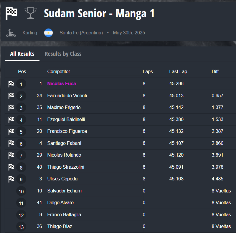 Nicolás Fuca estuvo imparable y ganó todo. El santafecino de Zavalla que integra el equipo Cronos Racing Team ganó la qualy y primera manga.