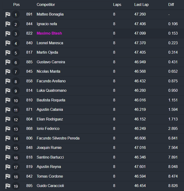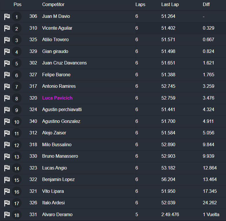 Pole Position para el nuequino Vicente Aguilar (Cronos Racing Team / motor Distante) que lideró buena parte de la manga, pero donde finalmente ganó Juan Martín Davio (OS Racing).