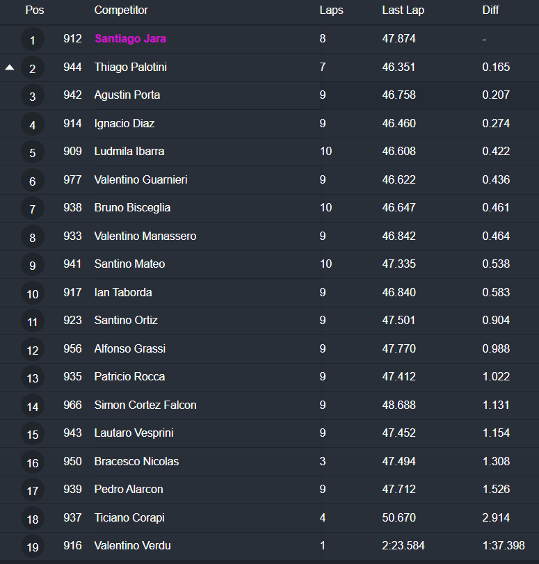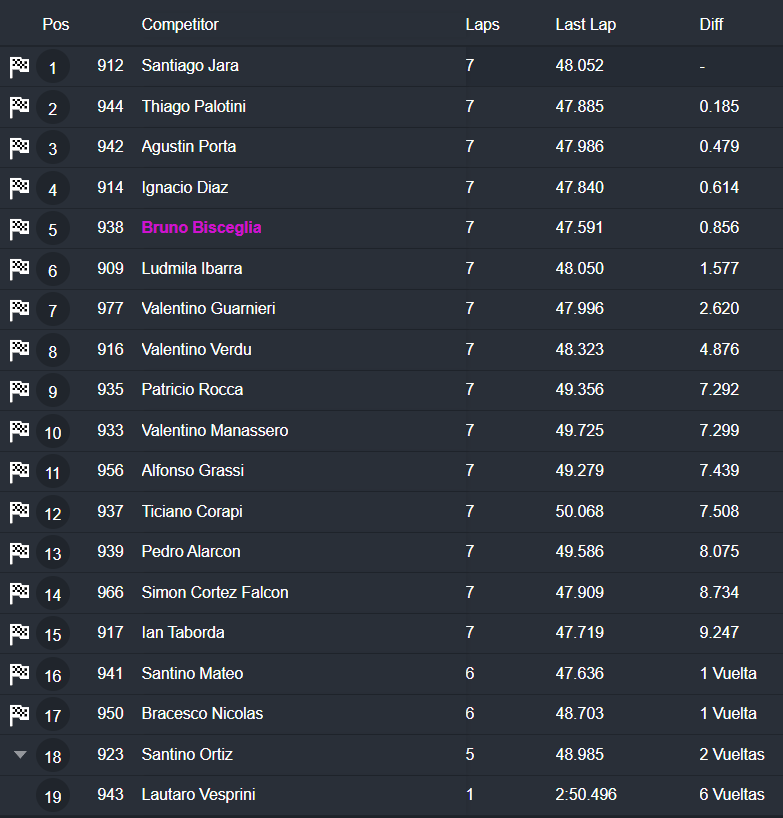 El nuequino Santiago Jara (Guiffrida Competición/Tassi Racing) se llevó la pole y la primera manga, que estuvo bastante apretada, pero donde Jara logró imponerse.