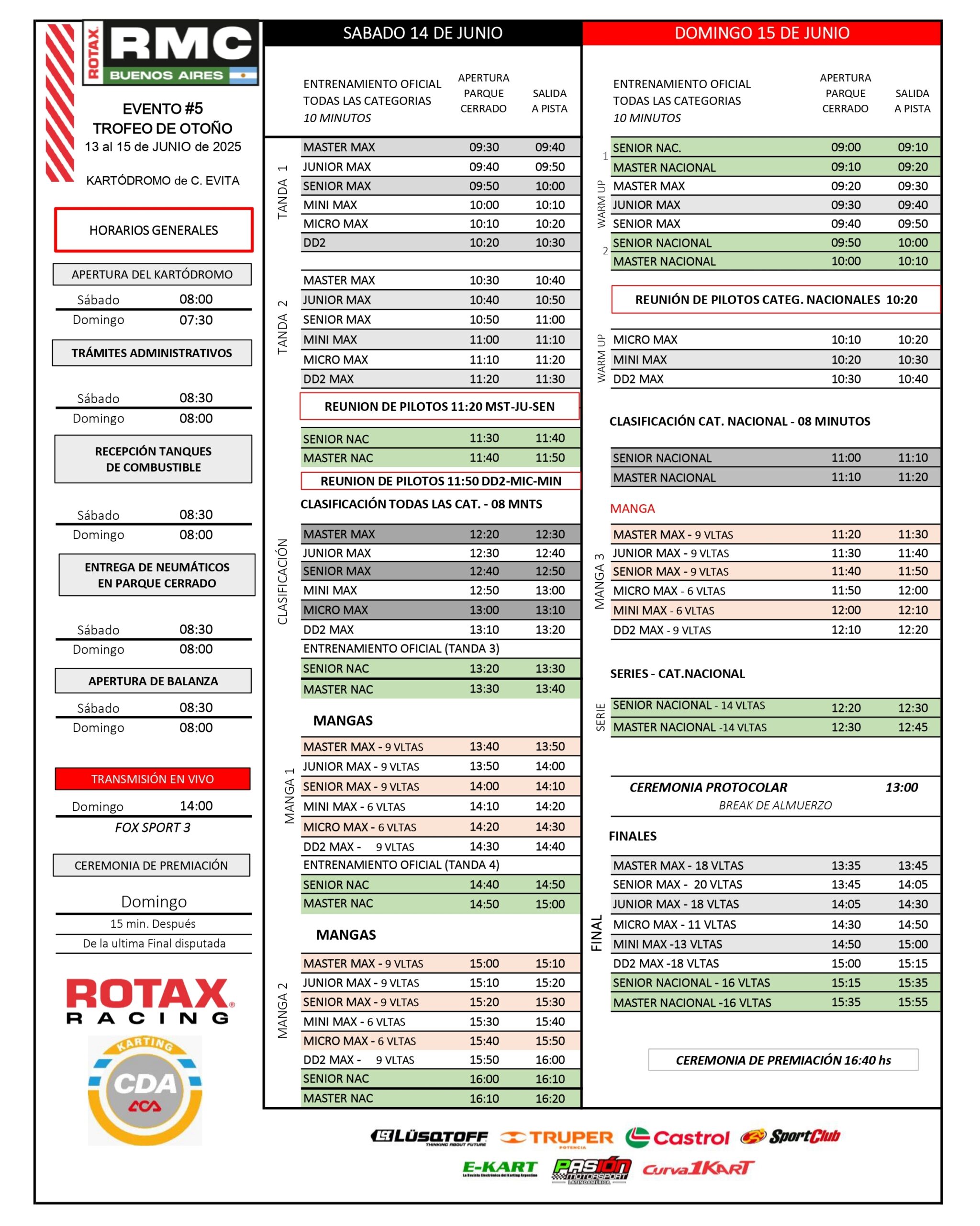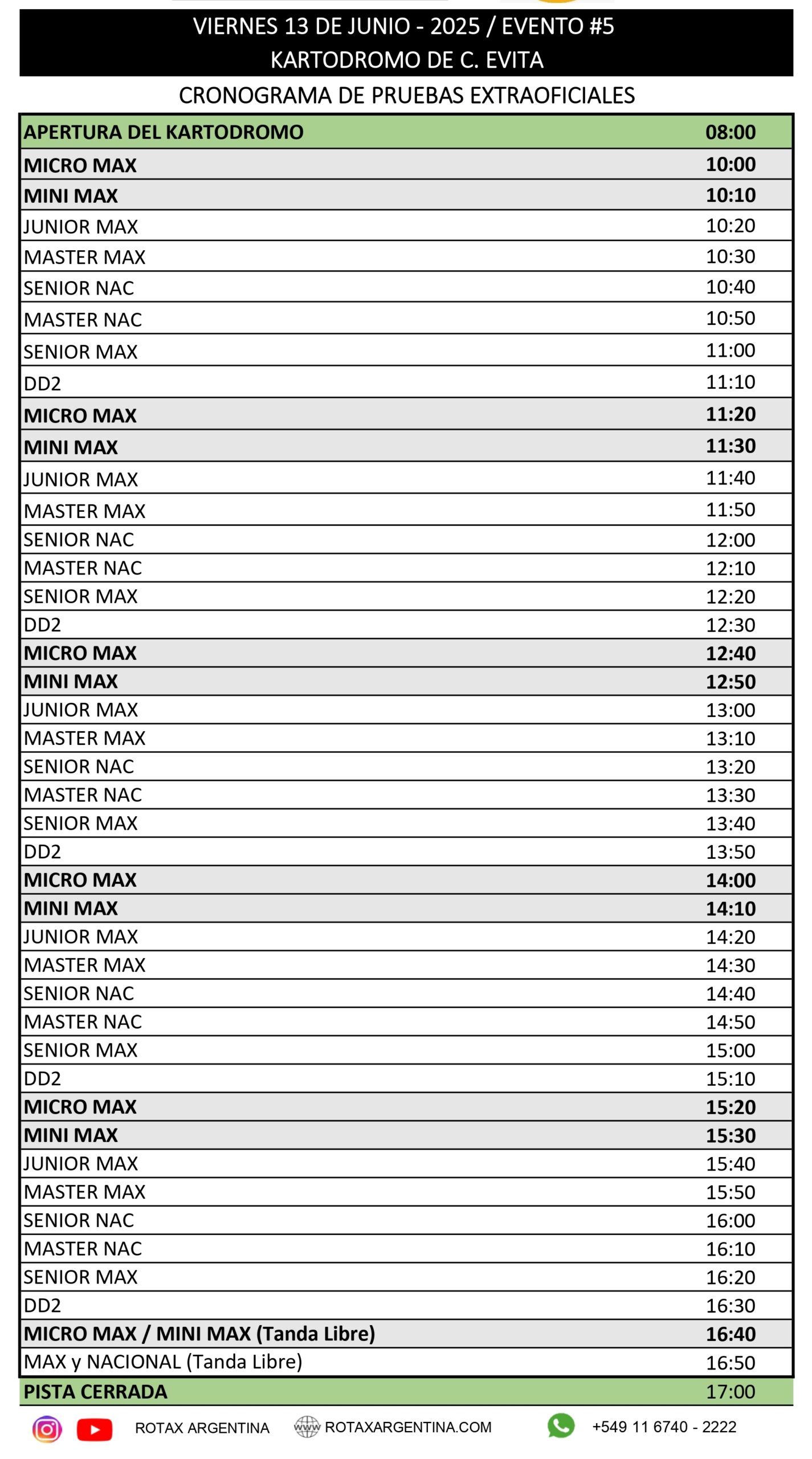 Horarios para la definición del Trofeo de Verano de Rotax