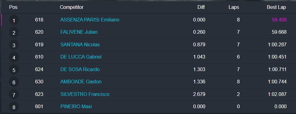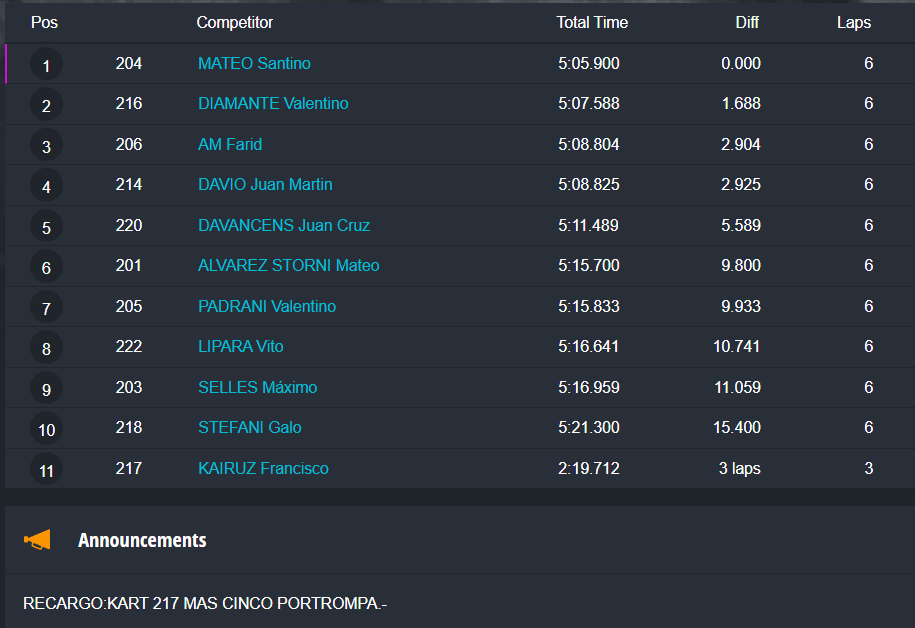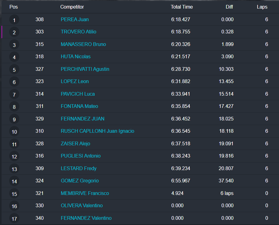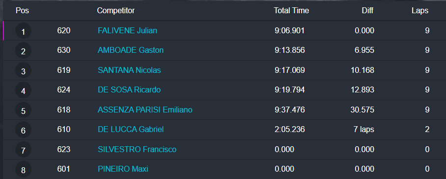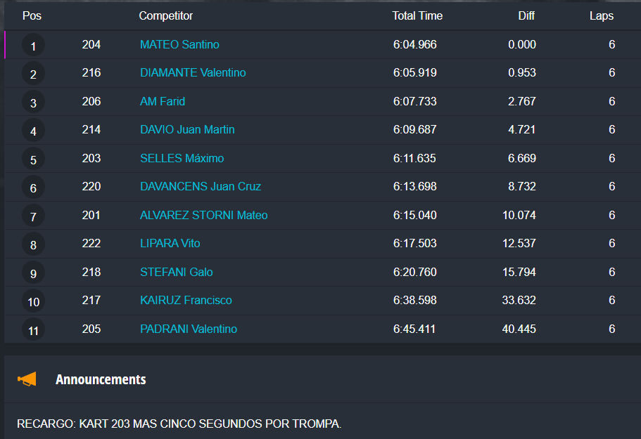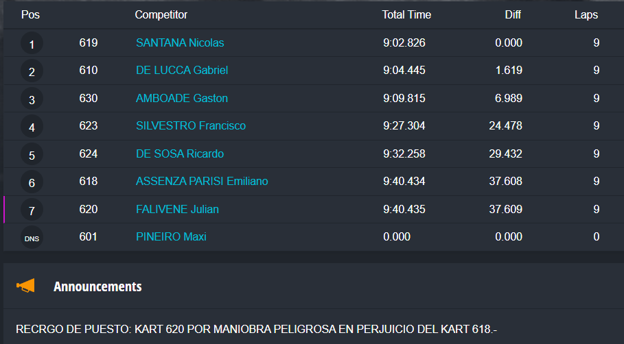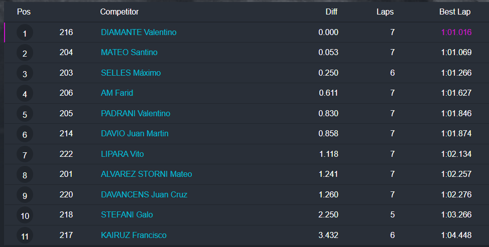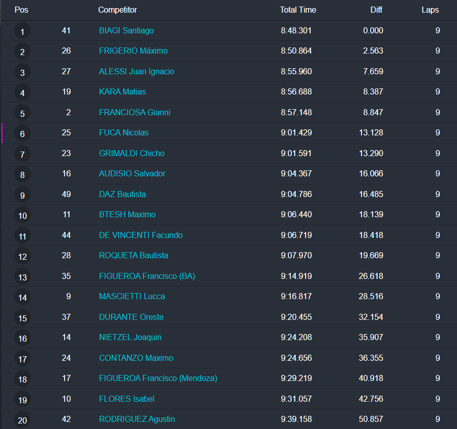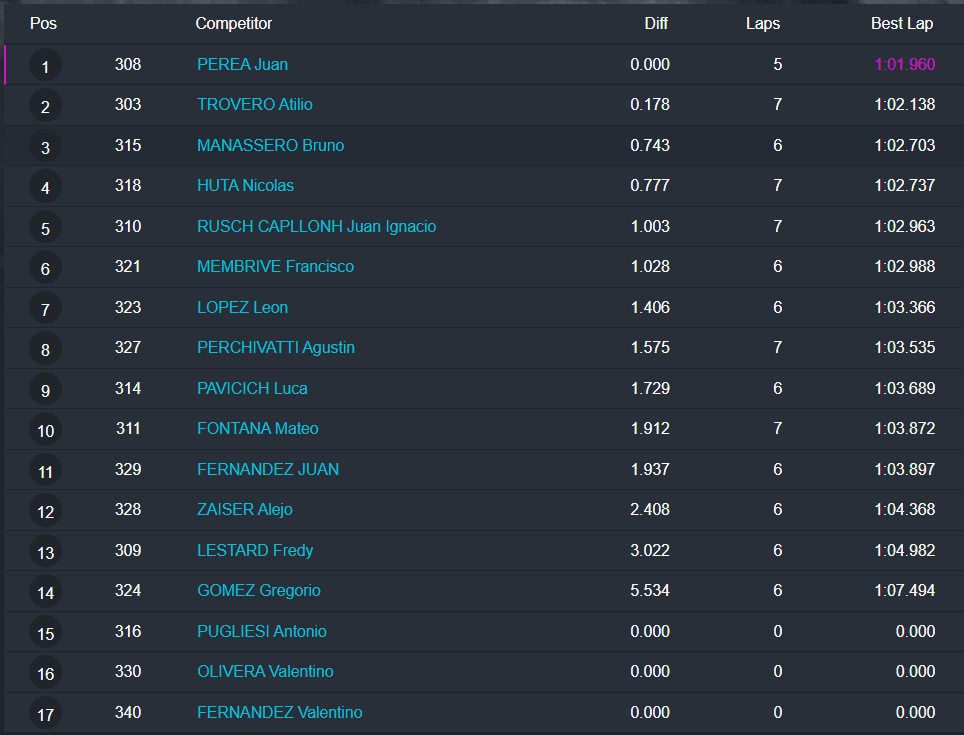 La noticia del día fue la consagración anticipada de Bautista Panetta en Junior Max, que es el nuevo Campeón luego de sumar los puntos de la pole position y ganar las dos mangas. Panetta es el cuarto campeón anticipado, junto a Gabriel De Lucca (Master Max), Matías Rodríguez (DD2) y Diego Vigliercio (Master Nacional).