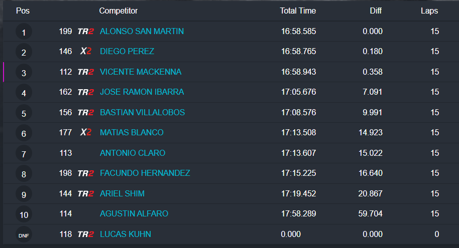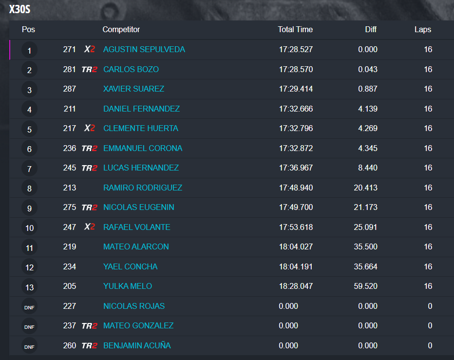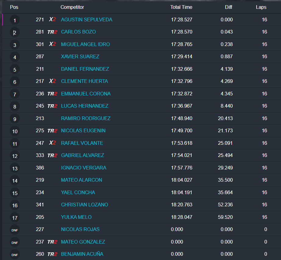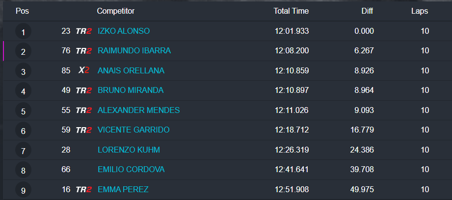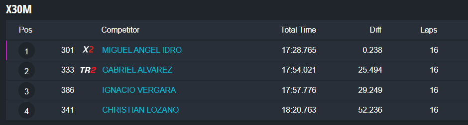 Estos fueron los resultados de la carreras finales: