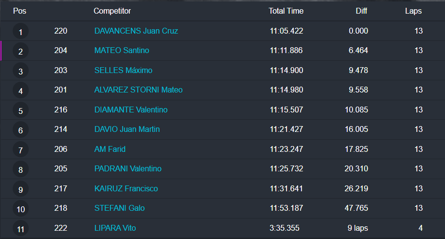 DAVANCENS VOLVIÓ A GANAR Y SANTINO MATEO ES EL CAMPEÓN