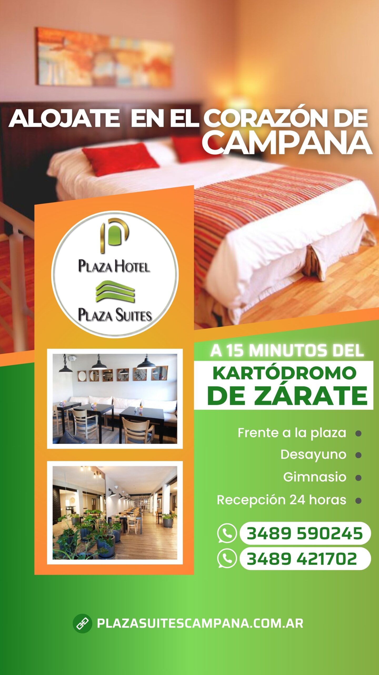 Recomendamos PLAZA HOTEL de Campana, a menos de 15 minutos del Kartódromo de Zárate con excelentes servicios, ubicado enfrente de la plaza principal y con acceso a pie a variados locales gastronómicos.