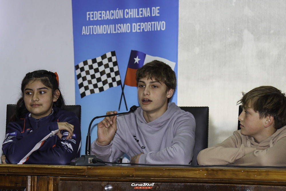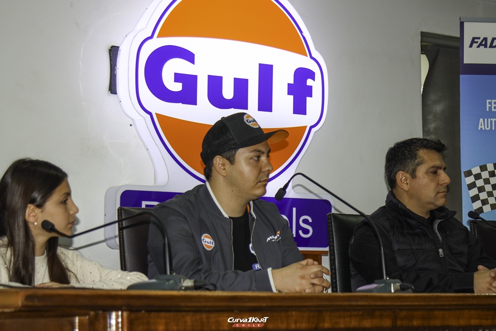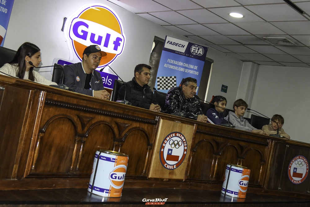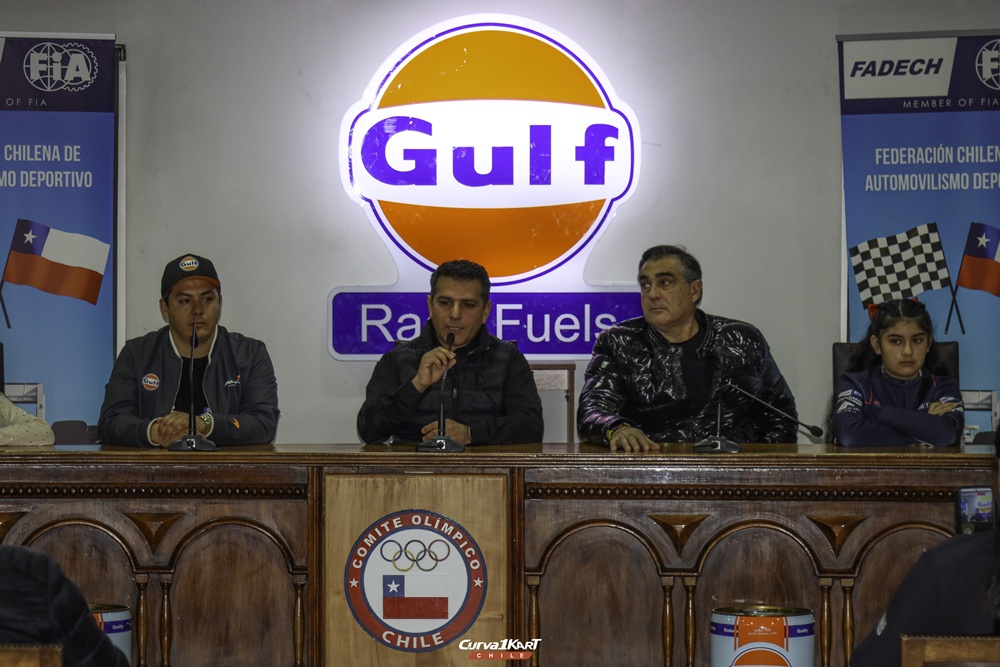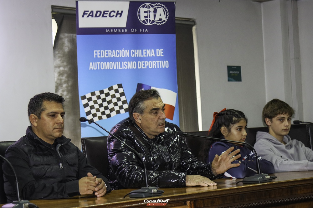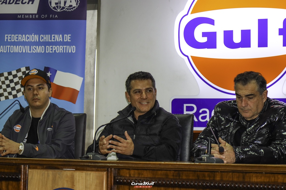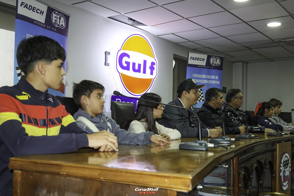 La charla comenzó con la palabra de Mauricio Melo, Presidente de Fadech, que destacó el crecimiento del karting profesional en el país y la proyección internacional de varios pilotos. Siguió Francisco Barba, Presidente de Superkarts Chile y organizador de la competencia, que dio detalles de este importante evento internacional. Continuó Cristian Coppola, gerente de GULF Race Fuels Chile, main sponsor del Sudamericano FIA.