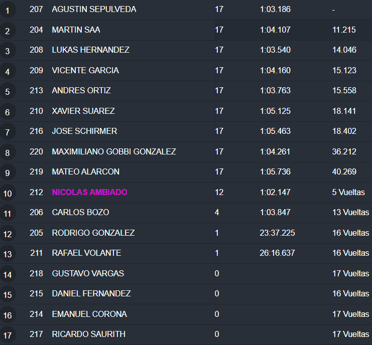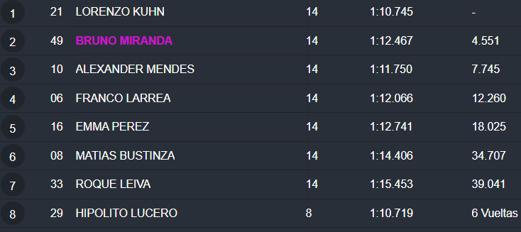 Los 2 heats y 1 pre final del sábado ordenaron la grilla de las “Super Finales” del domingo, que fueron transmitidas en vivo por DirecTV y YouTube, en el evento organizado por Superkarts Chile y fiscalizado por Fadech, comisarios deportivos de CBA Brasil y asesorados por el veedor FIA para Sudamérica.