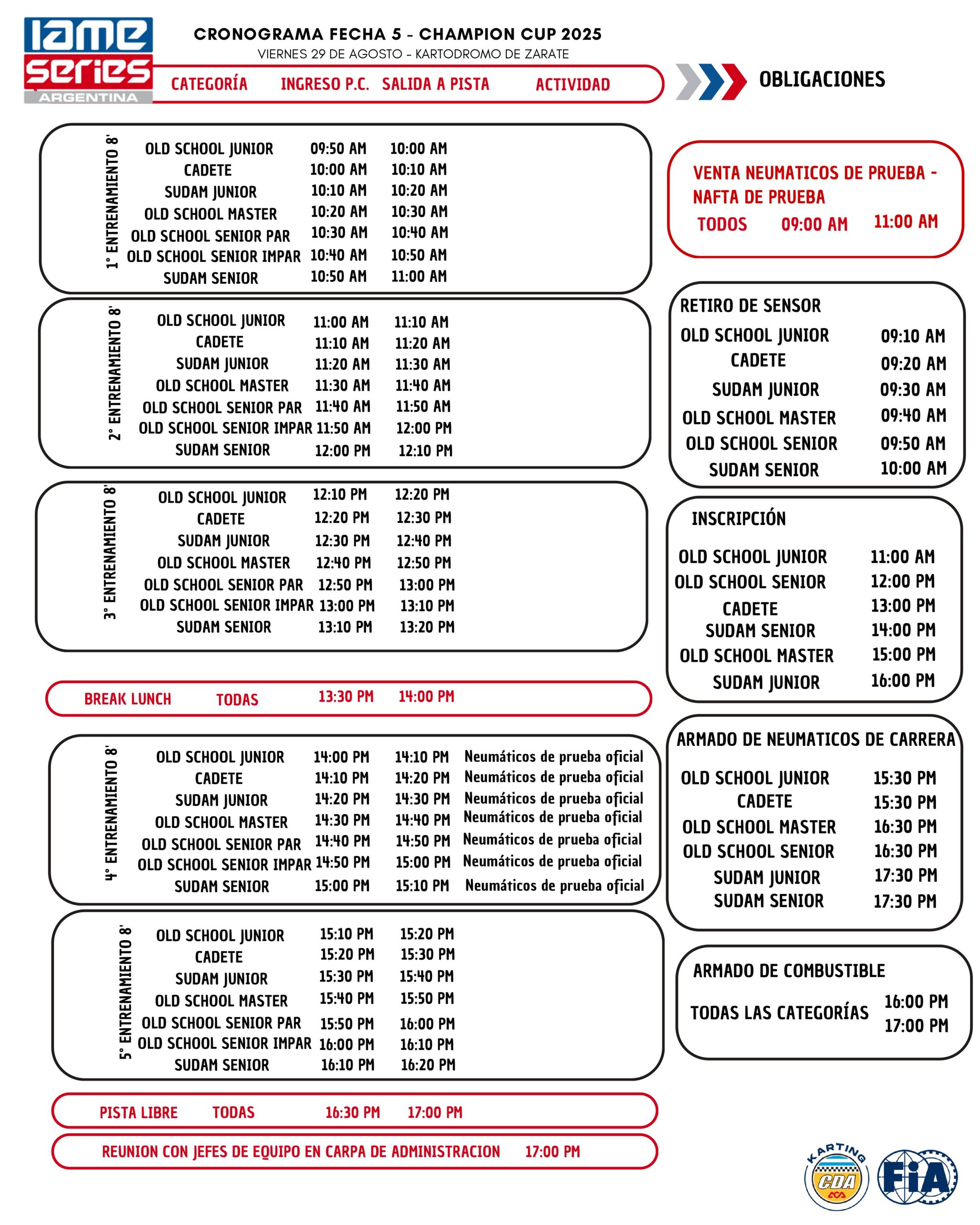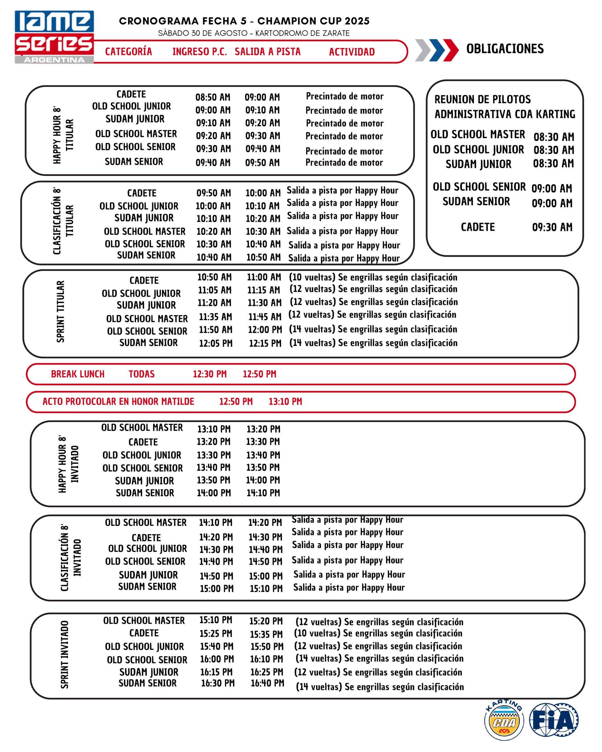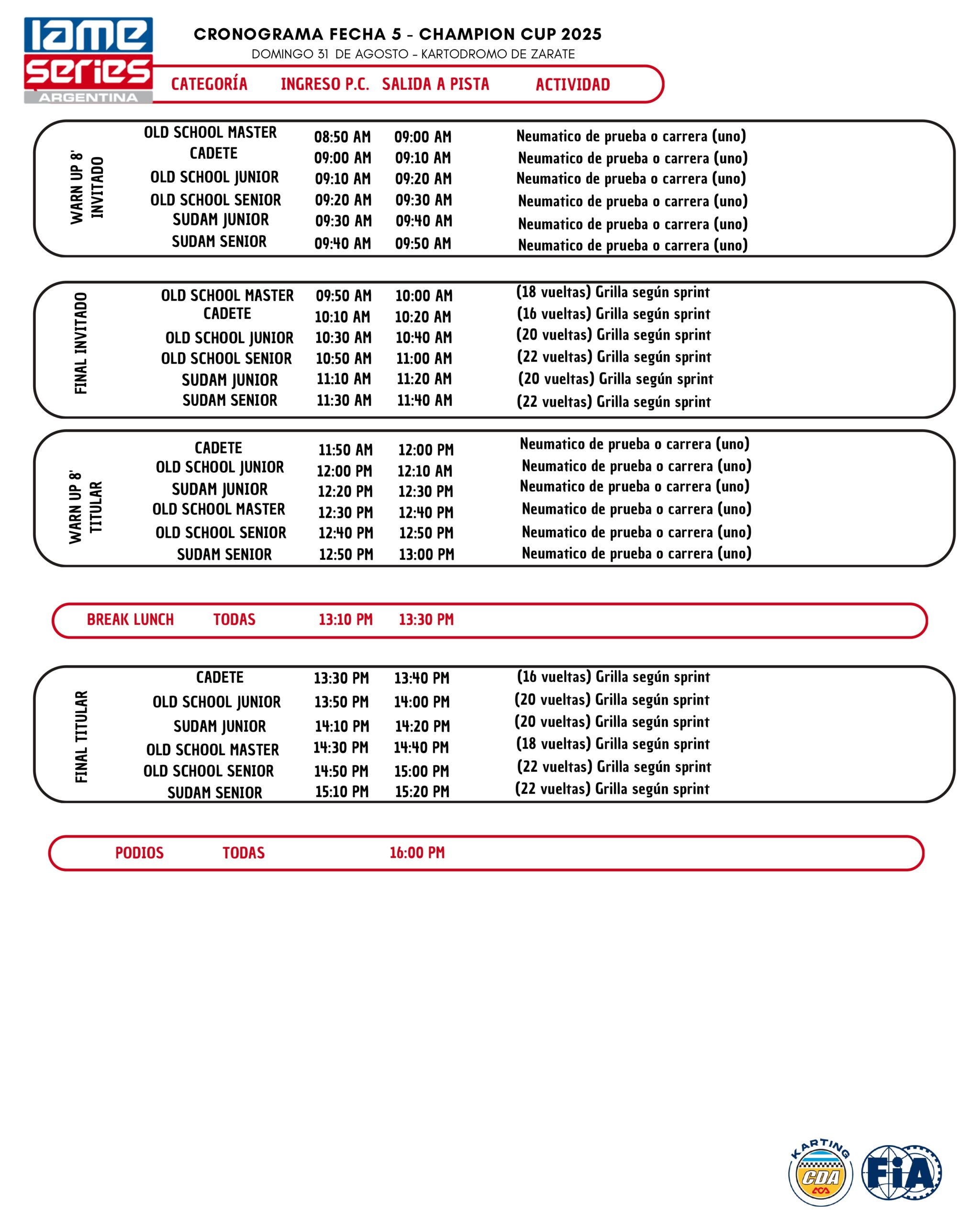 Lo más importante son los “nuevos horarios” que te dejamos abajo, donde se especifica la actividad para pilotos TITULARES y lo que será de pista para los pilotos INVITADOS.