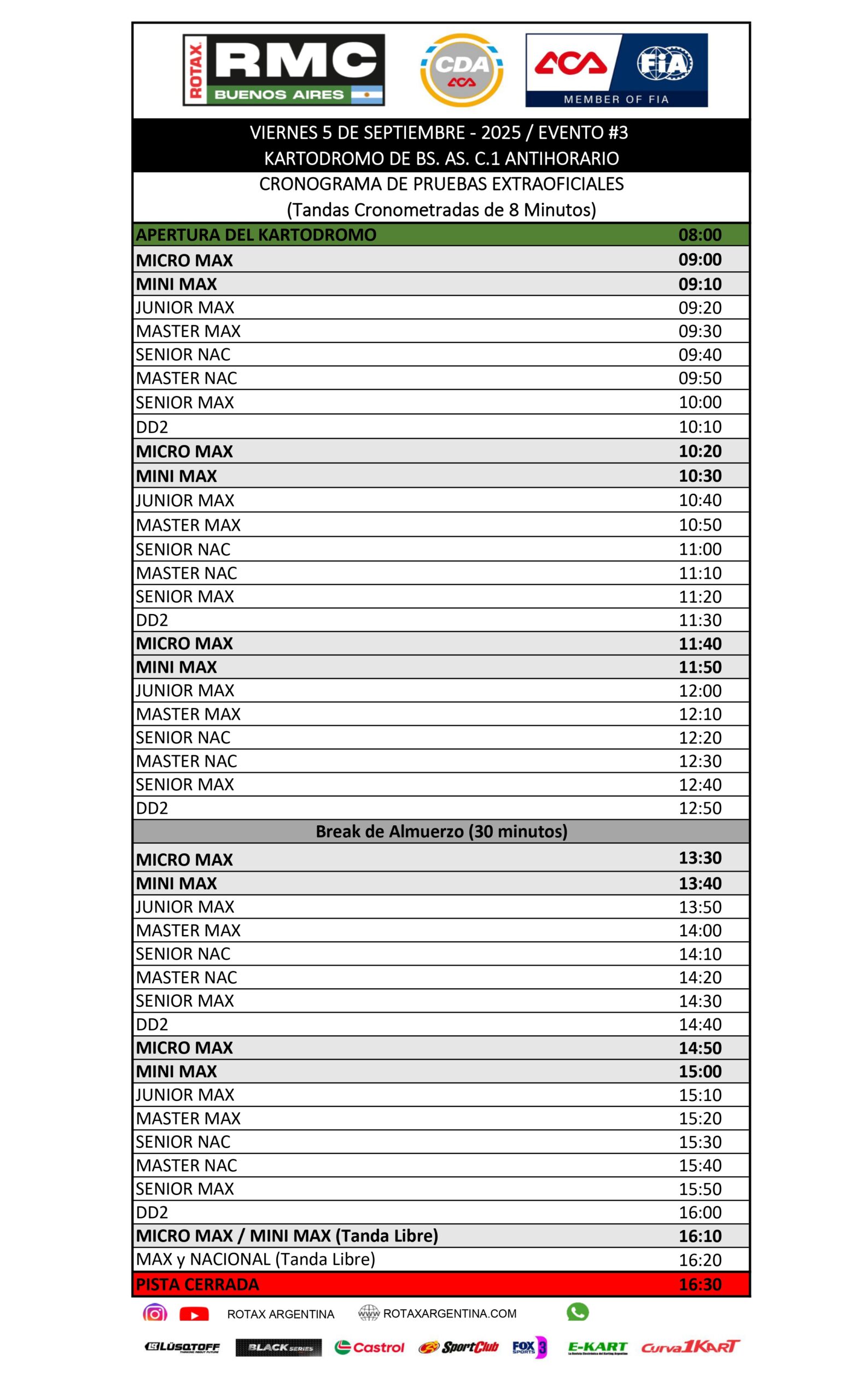 Horarios para la 3° del “invierno” de Rotax en Buenos Aires