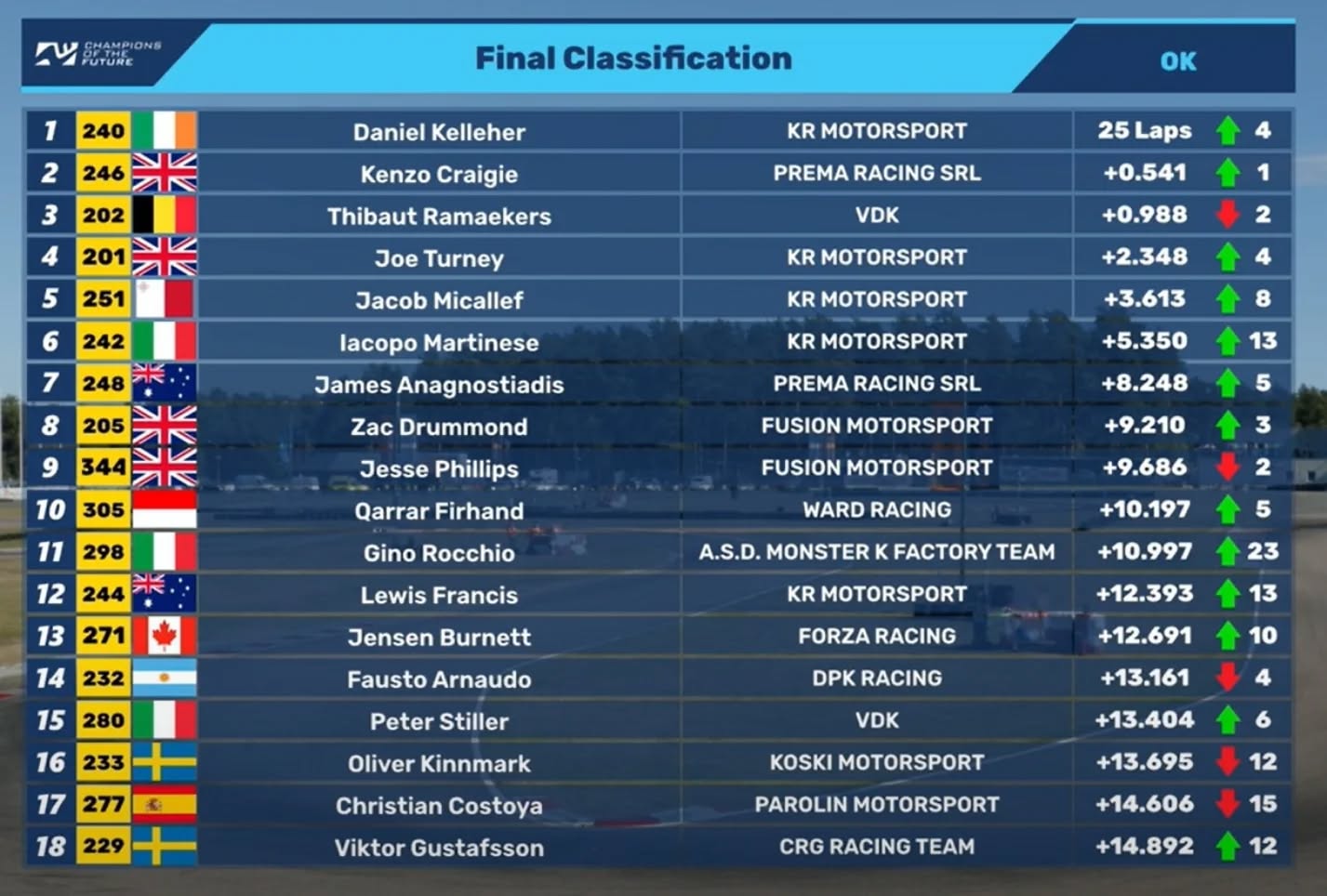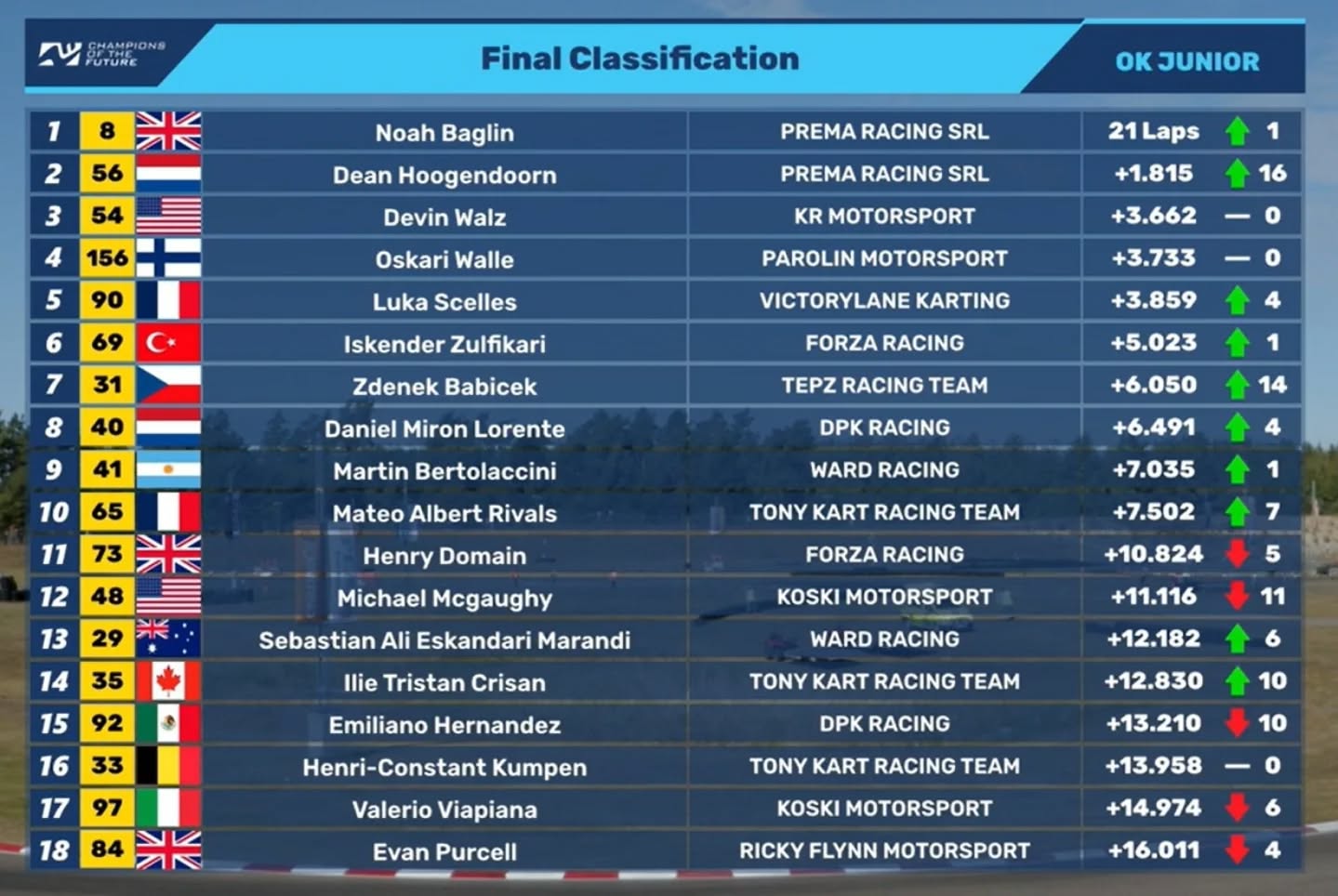 Finalizó en “Pre Mundial FIA” en Kristiandstad (Suecia) , fecha válida por el torneo Champions of the Future donde 2 de nuestros pilotos nacionales ingresaron a la final.