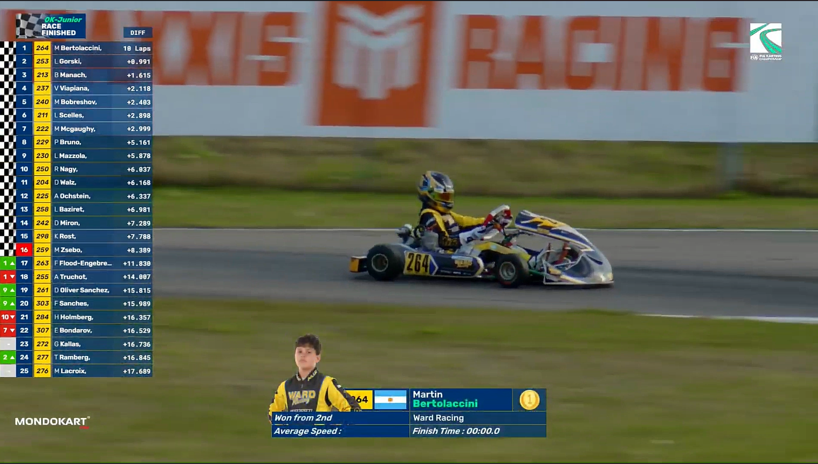 Hacen ya 15 años que con Curva 1 KART cubrimos el karting nacional e internacional y no recordamos algo así. Hemos visto triunfos en mangas y finales en Sudamericanos, Finales Internacionales como Rotax, IAME, Rok o similares, pero nunca en un “FIA World Championship”.