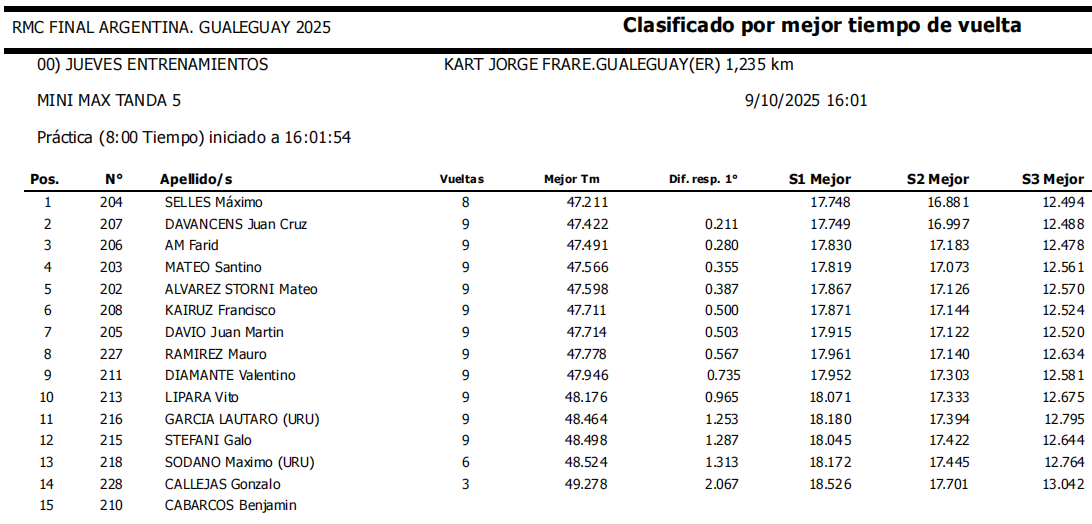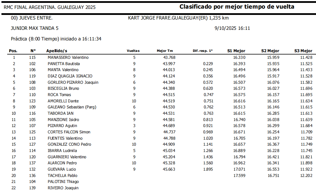 Este jueves se completó la primera jornada cronometrada de la FINAL ARGENTINA de ROTAX, que por primera vez está visitando el Kartódromo de Gualeguay, Entre Ríos.