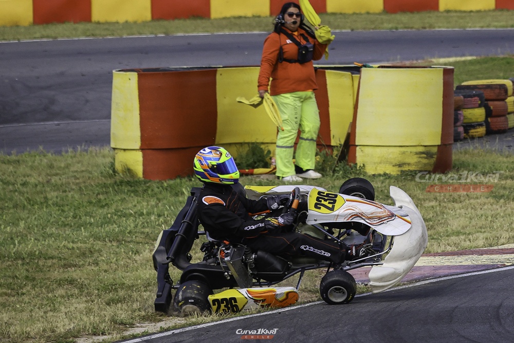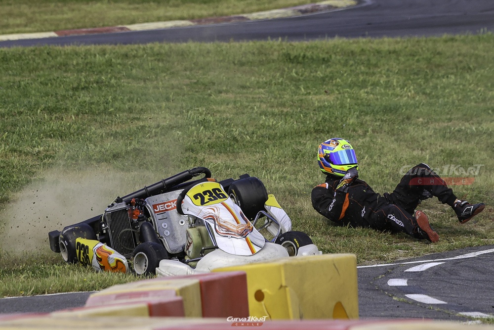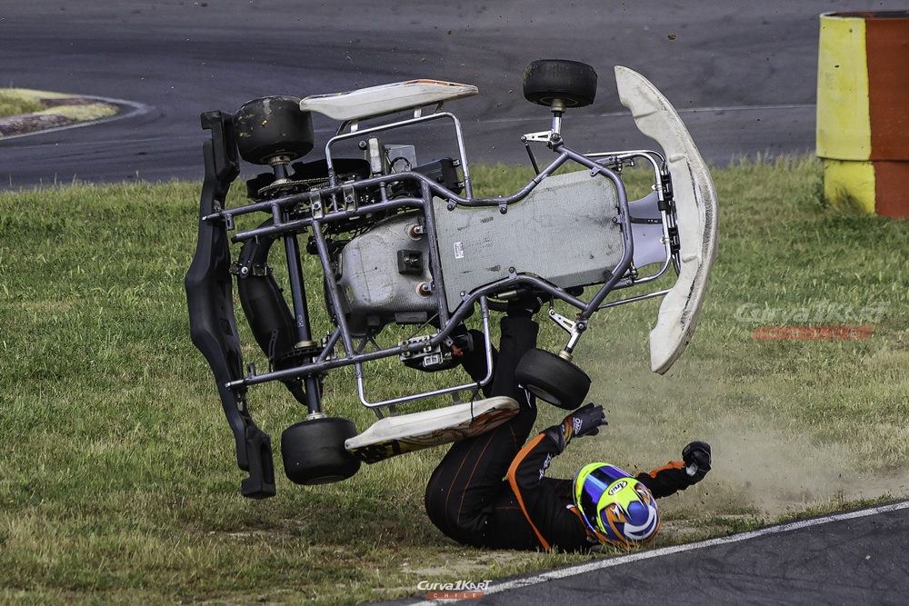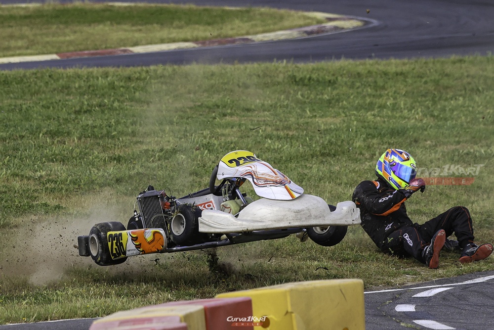 Emanuel Corona protagonizó un espectacular vuelco en la final Senior Max, por la última fecha de Rotax Chile en el circuito Las Perdices.