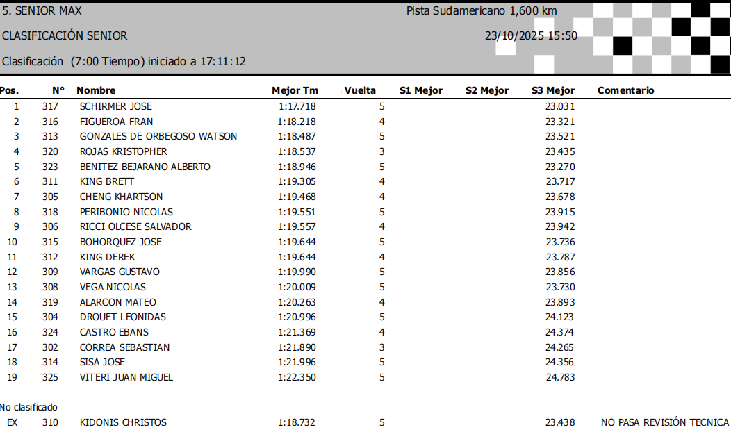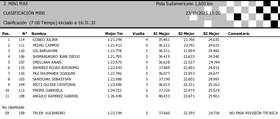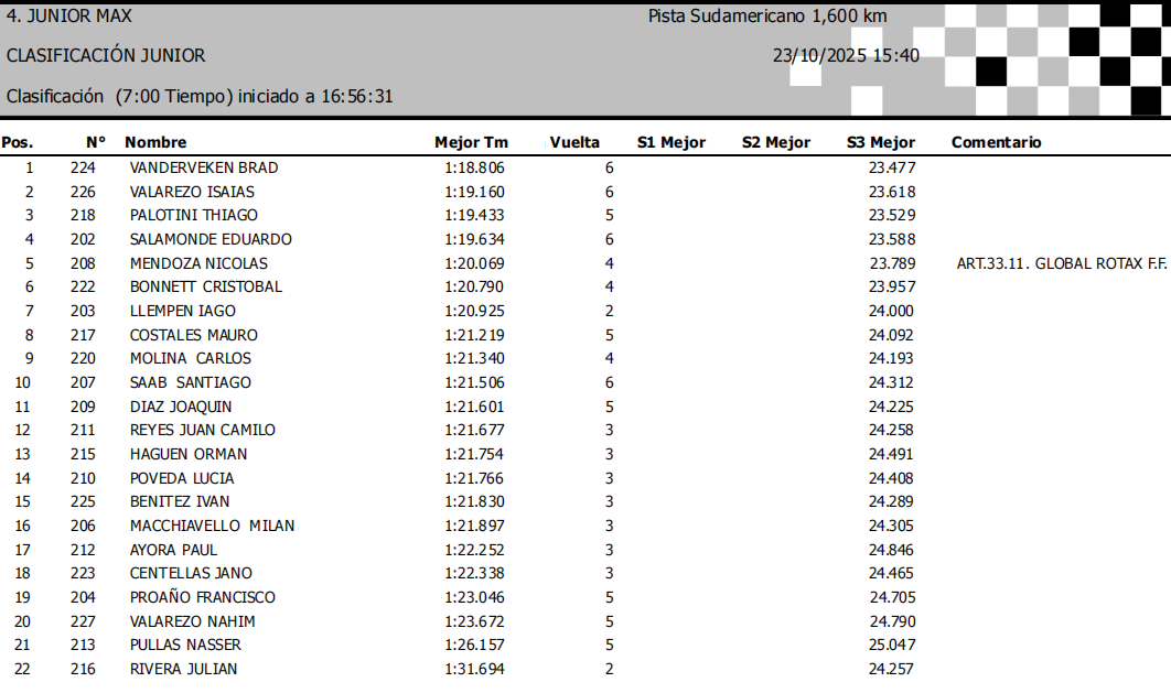 Este jueves se completaron las clasificaciones de la edición 2025 del Sudamericano Rotax, que se está realizando en el Kartódromo Cotopaxi de la ciudad de Latacunga, en Ecuador.