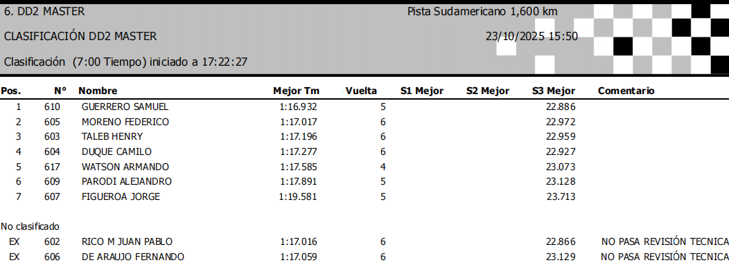 Luego de 40 minutos y un arduo trabajo del personal de pista para dejar el circuito sin ningun charco, se retomaron las clasificaciones que dejaron como pole position a estos pilotos: