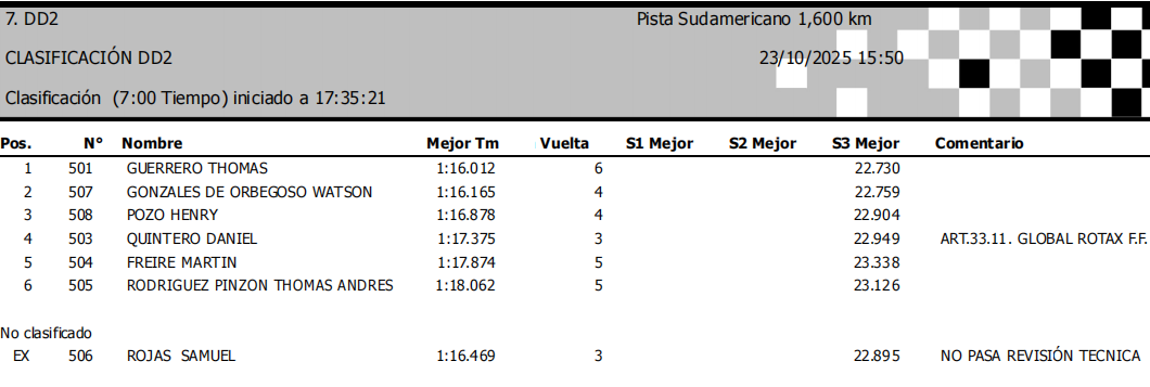 Clasificaciones del Sudamericano Rotax Ecuador 2025