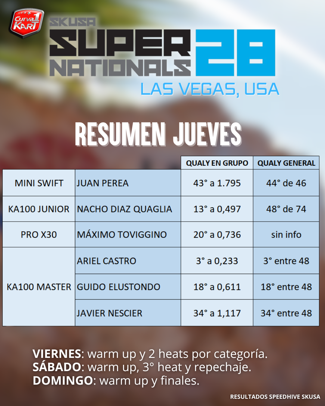 Son 6 los pilotos de Argentina que esta semana compiten en SKUSA SUPERNATIONALS 28 en el circuito montado en Las Vegas Motor Speedway.