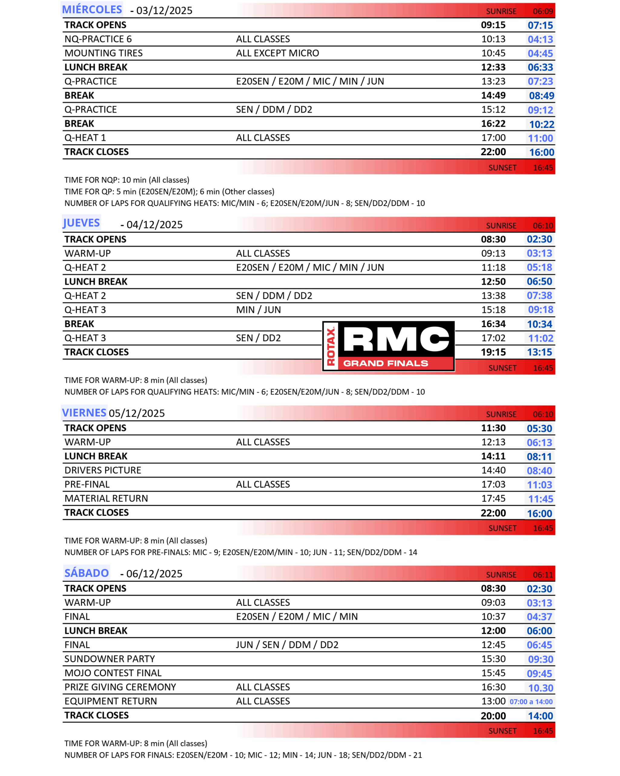 Horarios para seguir la Grand Finals Rotax de Baréin
