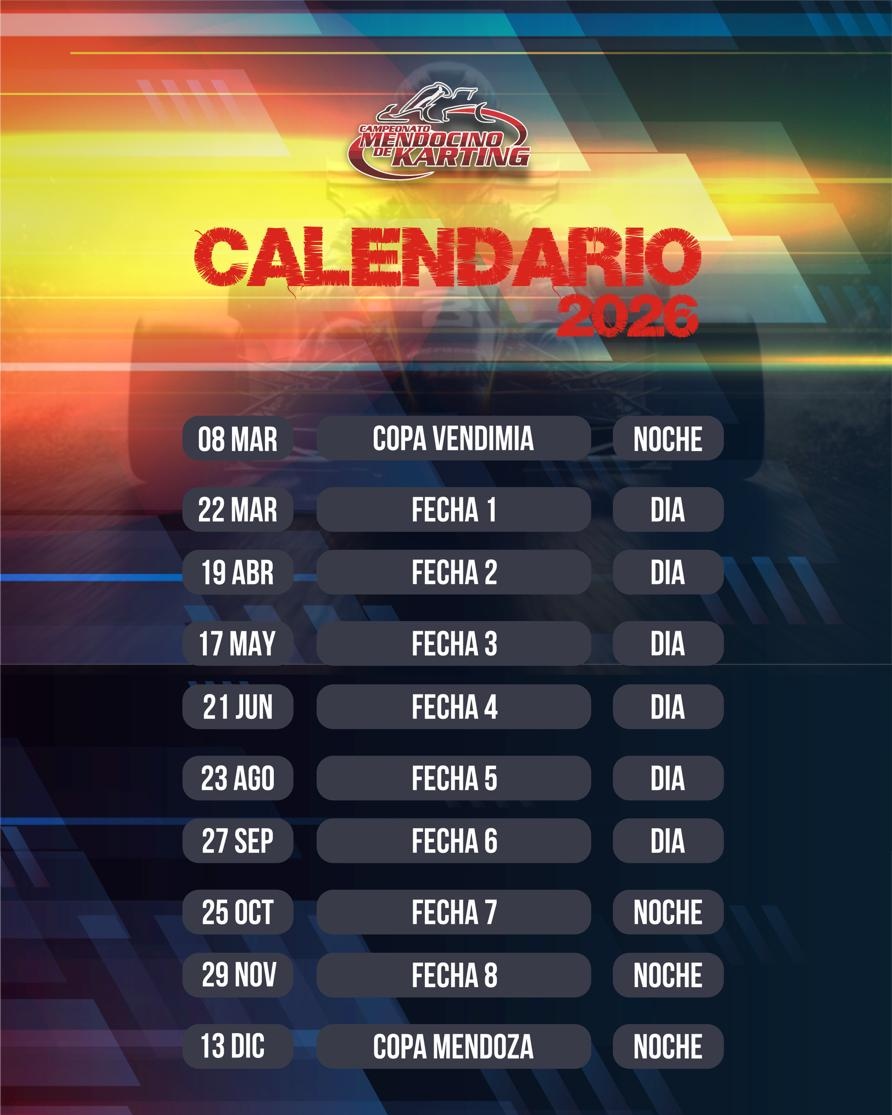 Te presentamos el Calendario 2026 para del Karting Mendocino de Asfalto que tendrá 10 eventos en el año distribuidos de esta forma: