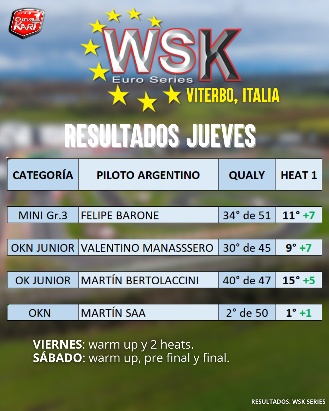 Este jueves comenzó el torneo WSK Euro Series que tiene 3 round y su primera parada es en Viterbo, donde hay 4 argentinos presentes.
