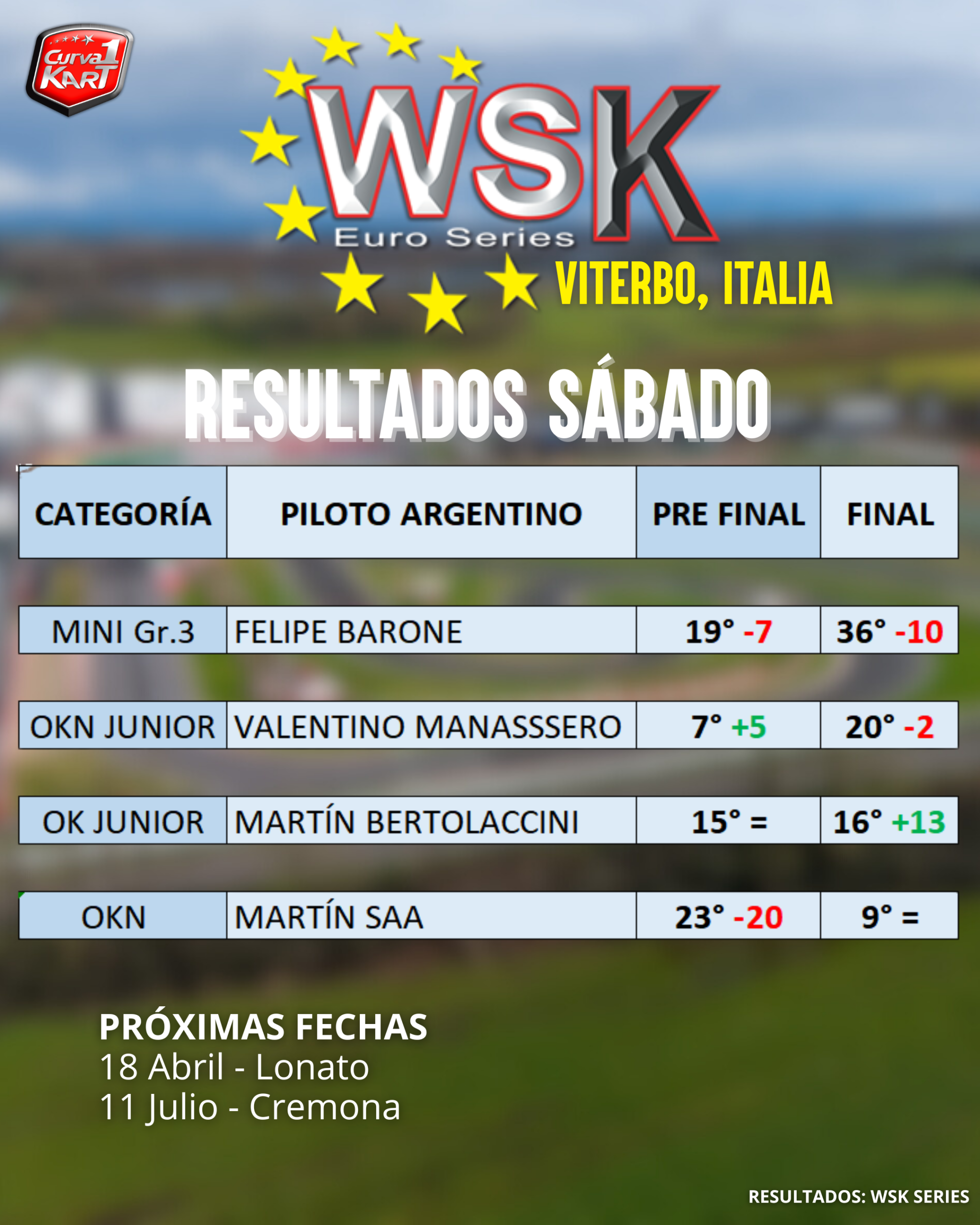 Resultados finales de los argentinos en WSK Euro Series en Viterbo