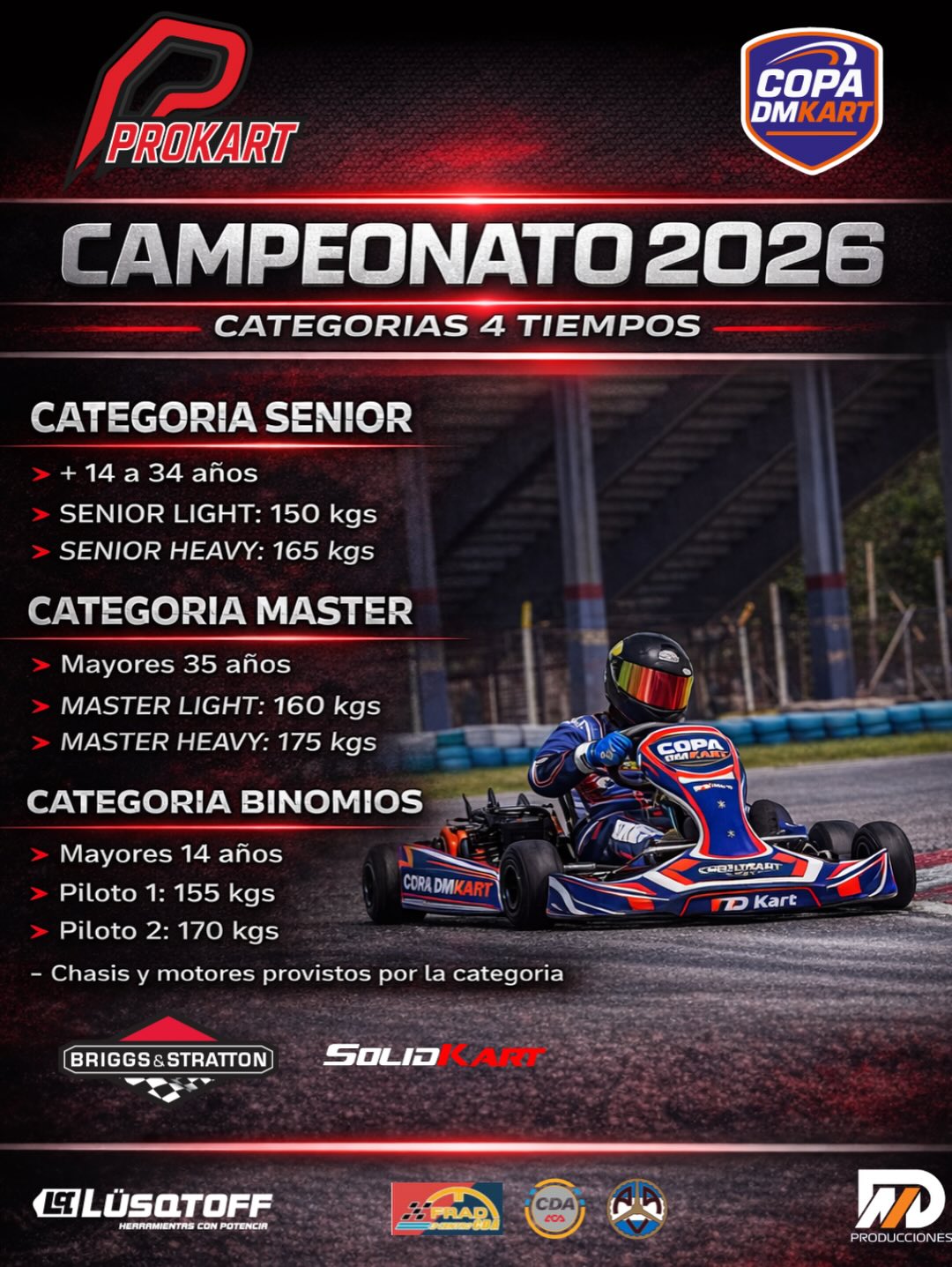 Una novedad es la incorporación de categorías con motores 4 tiempos de la marca Briggs & Stratton, para sus divisiones Senior, Master y Binomios.