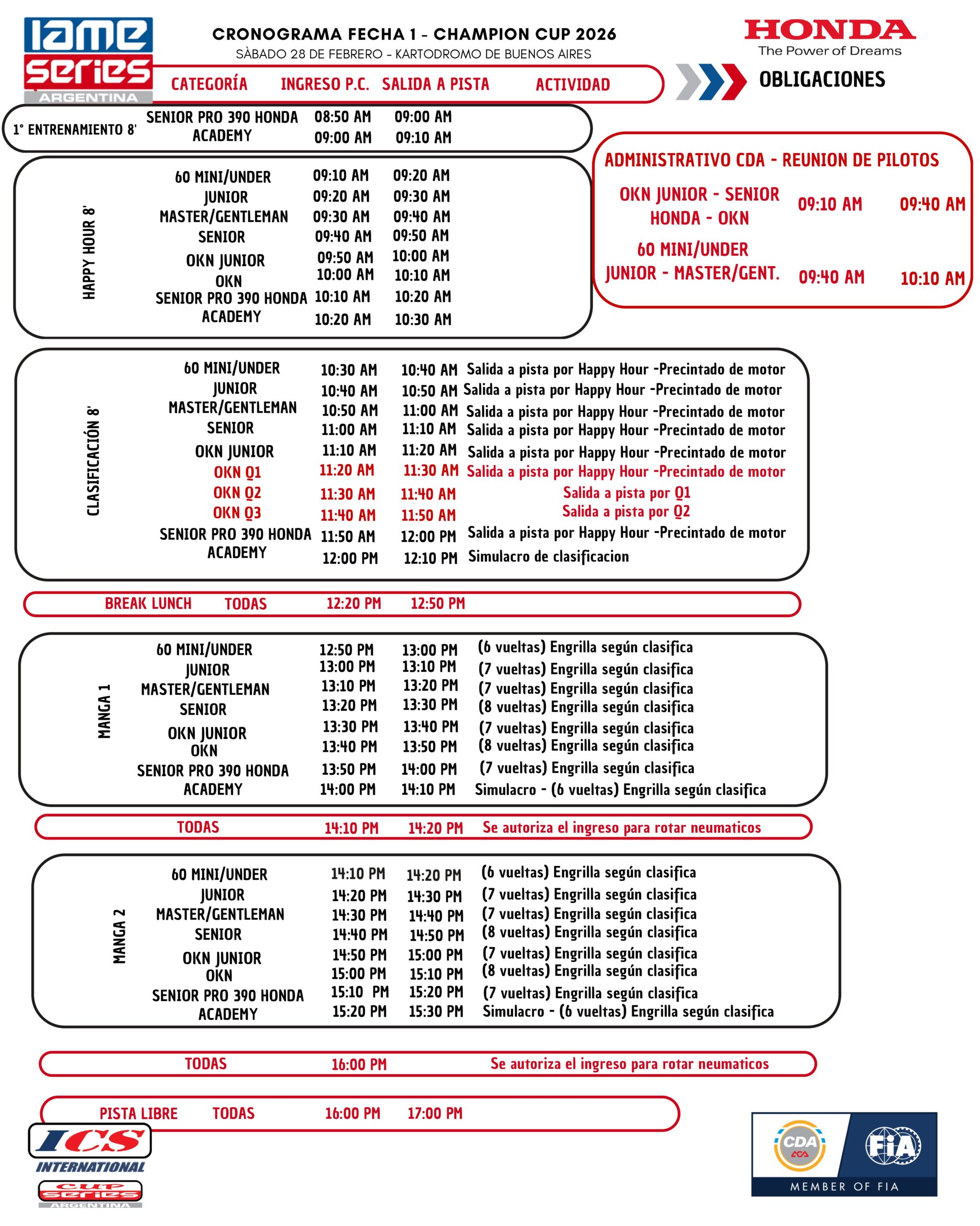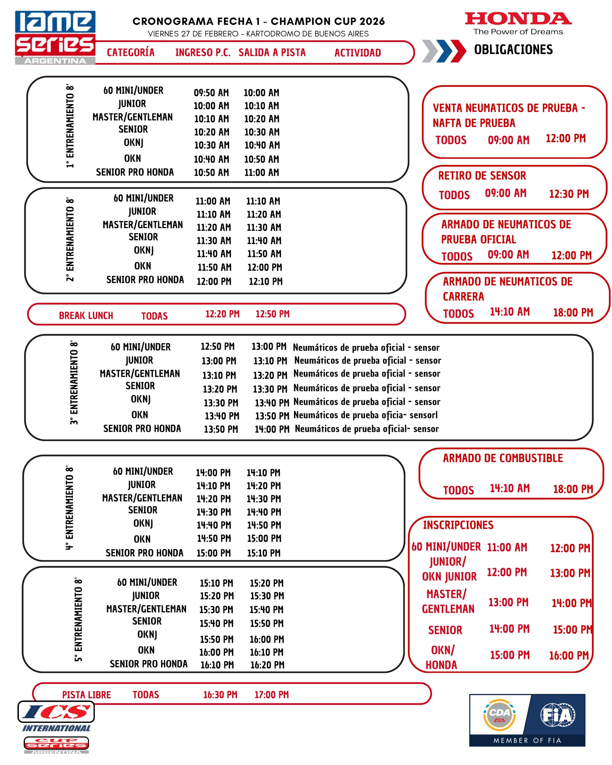 El próximo viernes 27 de febrero se inicia el 2026 para IAME Series, con una jornada completa de prácticas, como víspera de la Fecha 1 que transitará el circuito 2 horarios del Kartódromo Ciudad de Buenos Aires.