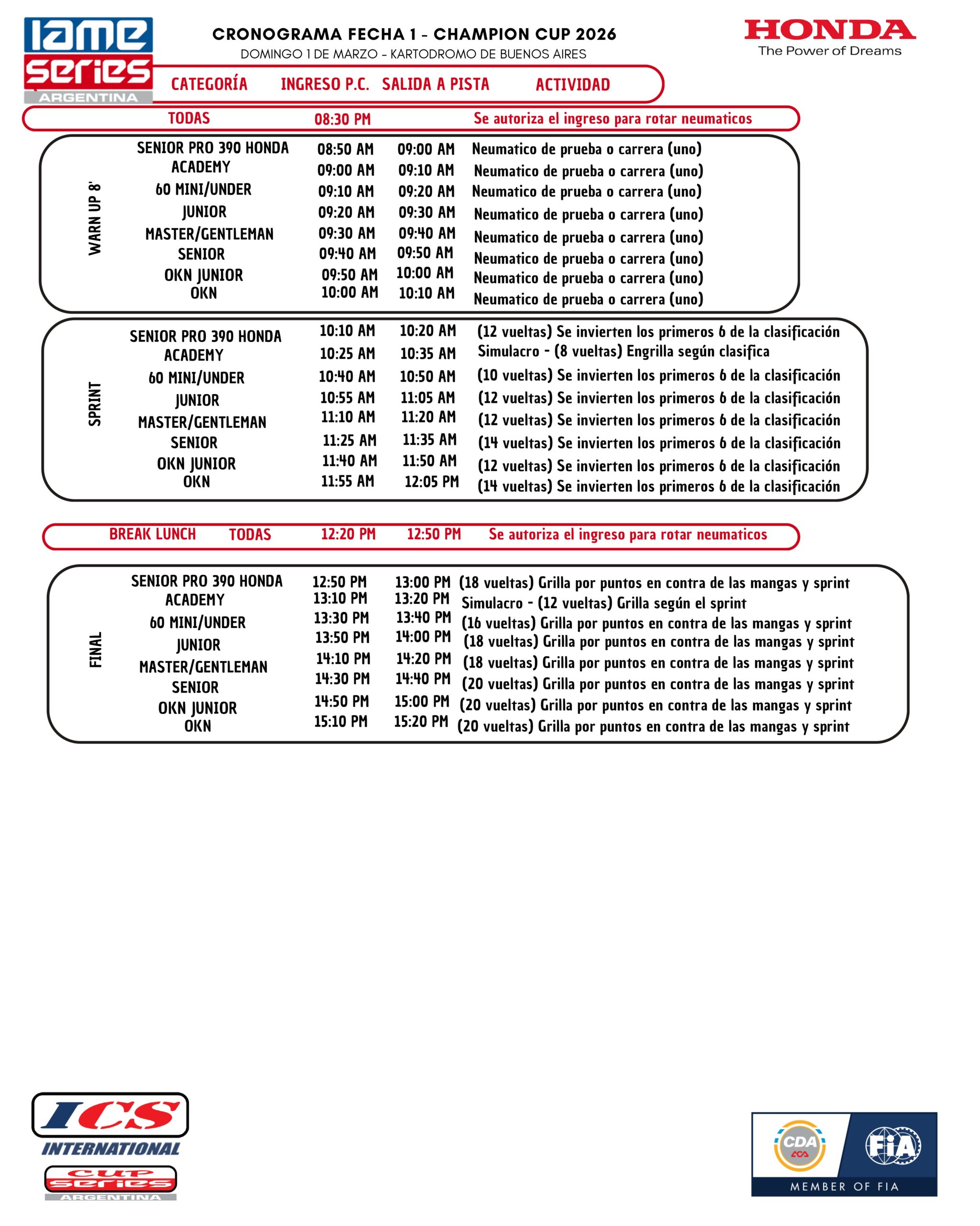 Este año, se comienzan a juntar puntos hasta la fecha 7, para luego disputar la Final IAME Argentina donde se definirán los tickets para correr en Italia en el mes de octubre.