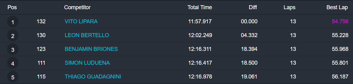 Vito Lipara (Al Kart) se llevó la victoria en Mini Promo, a la vez que también festejaron Joaquín Rossotti (General 135cc) e Juan Ignacio Agnoli (Low Cost). Fabricio Di Meo venció en Amateur Light y Nicola Escalón fue el primer ganador de la Copa DM Kart que tuvo 16 participantes.
