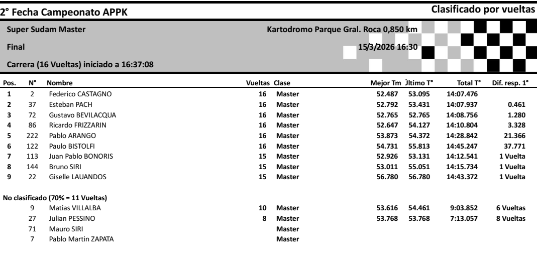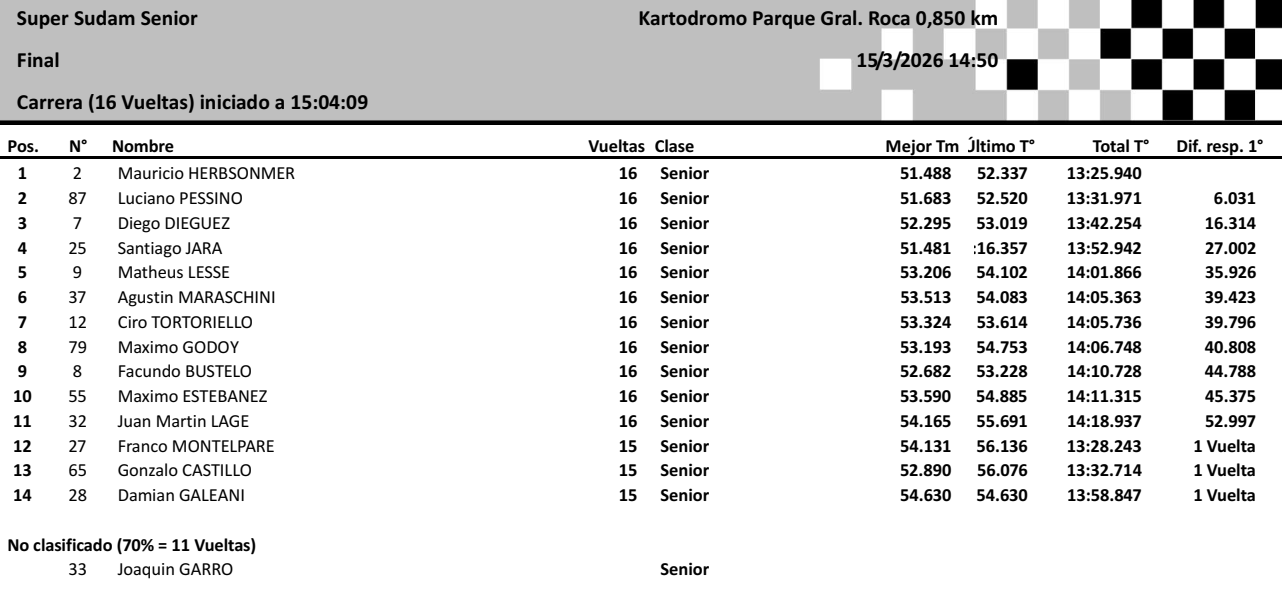 El destacado fue Mauricio Herbsonmer que se llevó al dificil final Super Sudam Senior, luego de ser tercero en la serie y avanzar hasta el primer lugar en prueba final. Lucciano Pessino (ganador de la fecha 1) y Diego Diéguez completaron el podio.