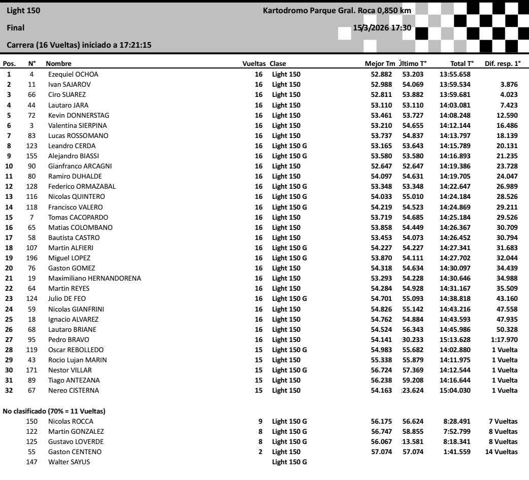 Ezequiel Ochoa ganó en Light 150, la categoría con más participantes de la fecha que tuvo una grilla final de 37 karts. En la premiación también estuvieron Ivan Sajarov y Ciro Suárez.