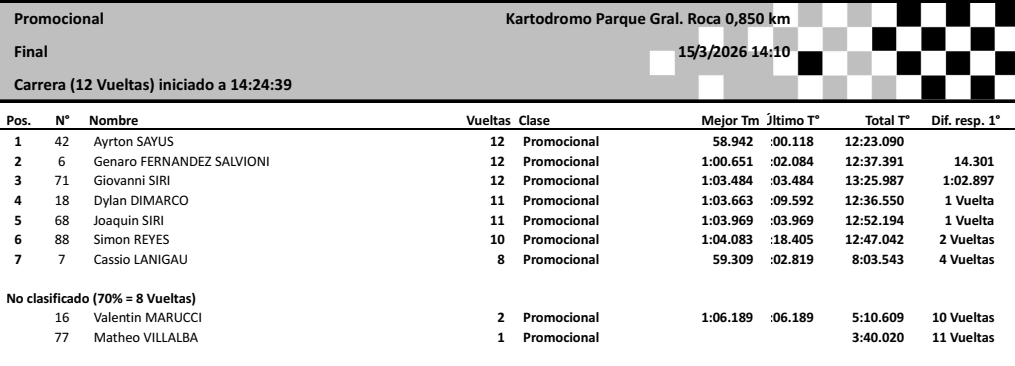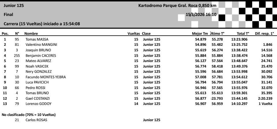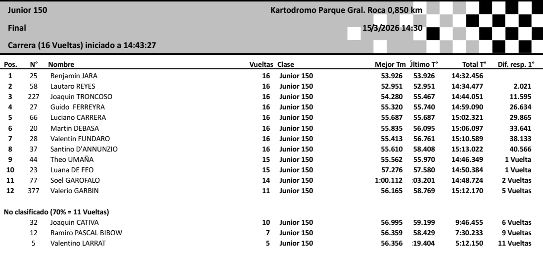 Benjamín Jara venció en Junior 150 y Ayrton Sayus en la clase Promocional que transitó el circuito del Autódromo Parque Ciudad de General Roca